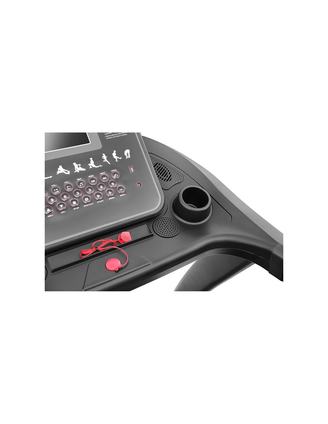 - antypoślizgowy pas biegowy i klucz bezpieczeństwa zadba o bezpieczeństwo ćwiczącego podczas biegu, marszu czy szybkim chodzie