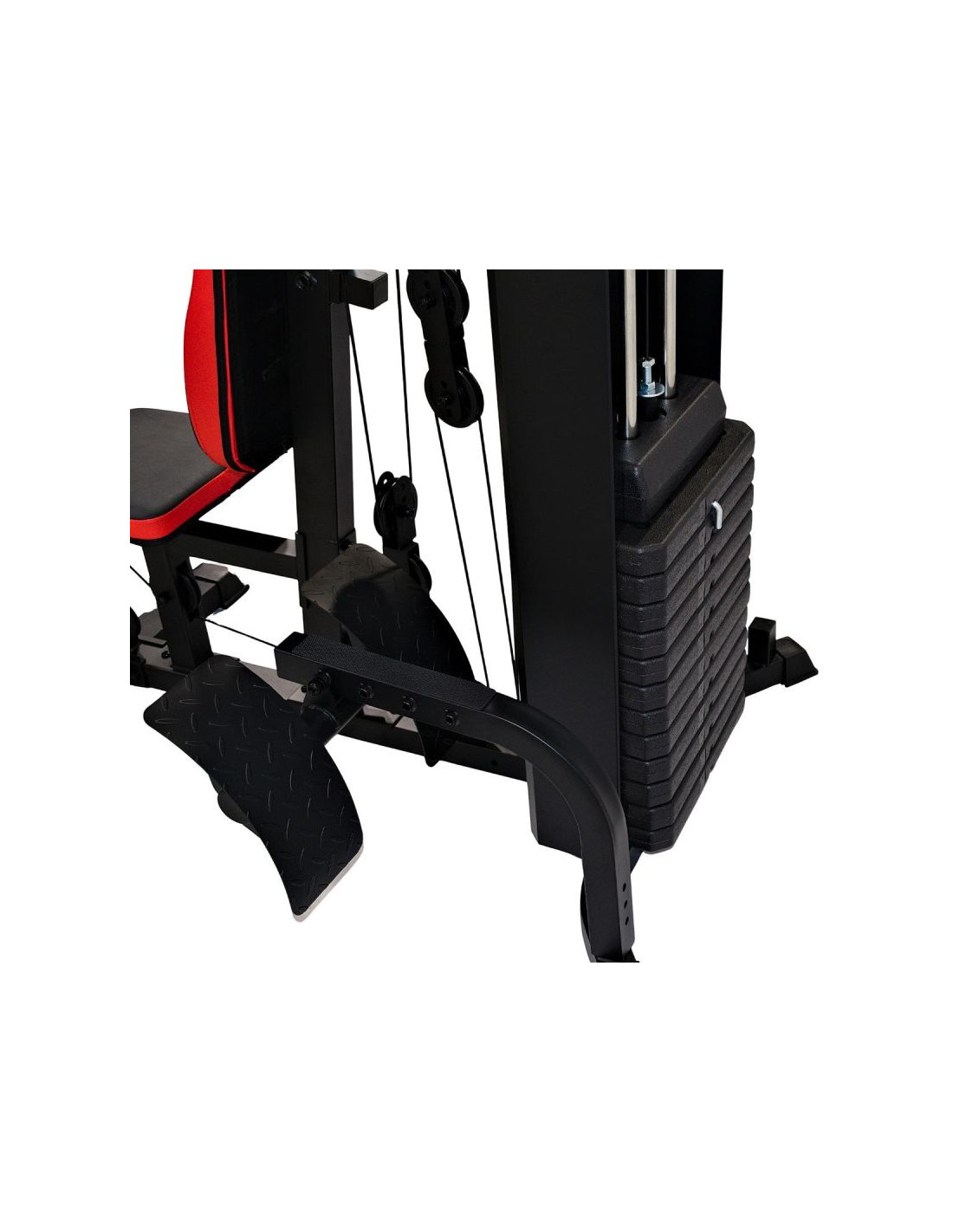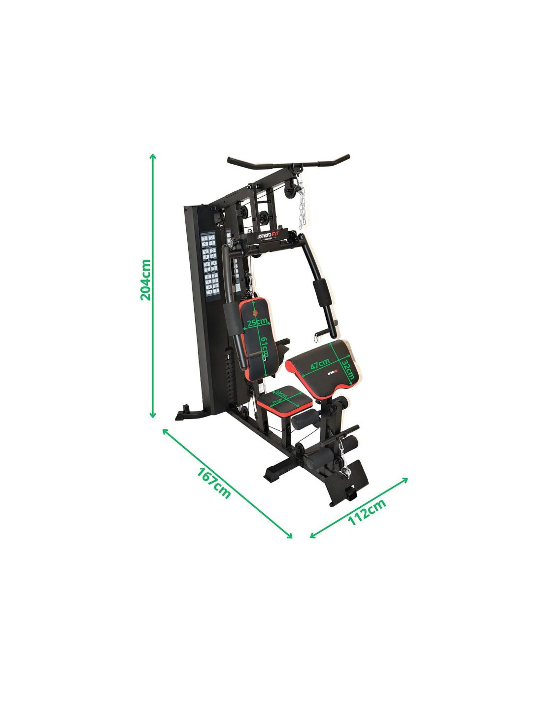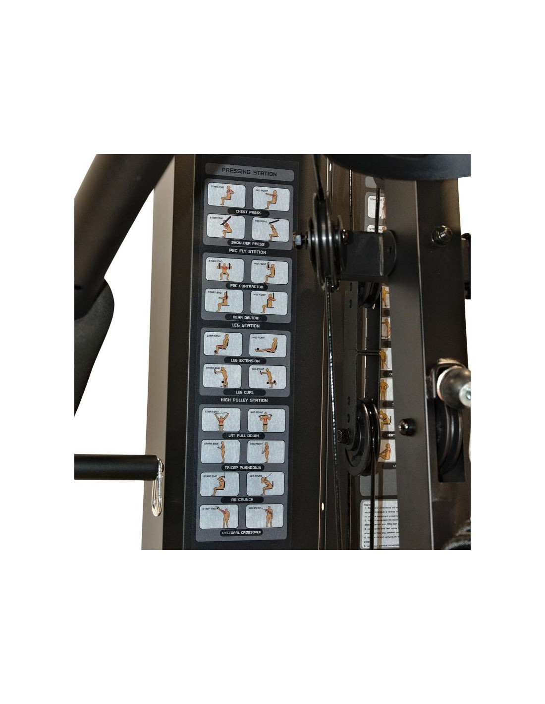 System wyciągów i kilku stanowisk pozwala pracować nad ramionami, klatką piersiową, nogami i plecami. Taki zakres funkcji umożliwia ułożenie pełnego planu treningowego bez dodatkowych urządzeń. Idealny dla początkujących i zaawansowanych.