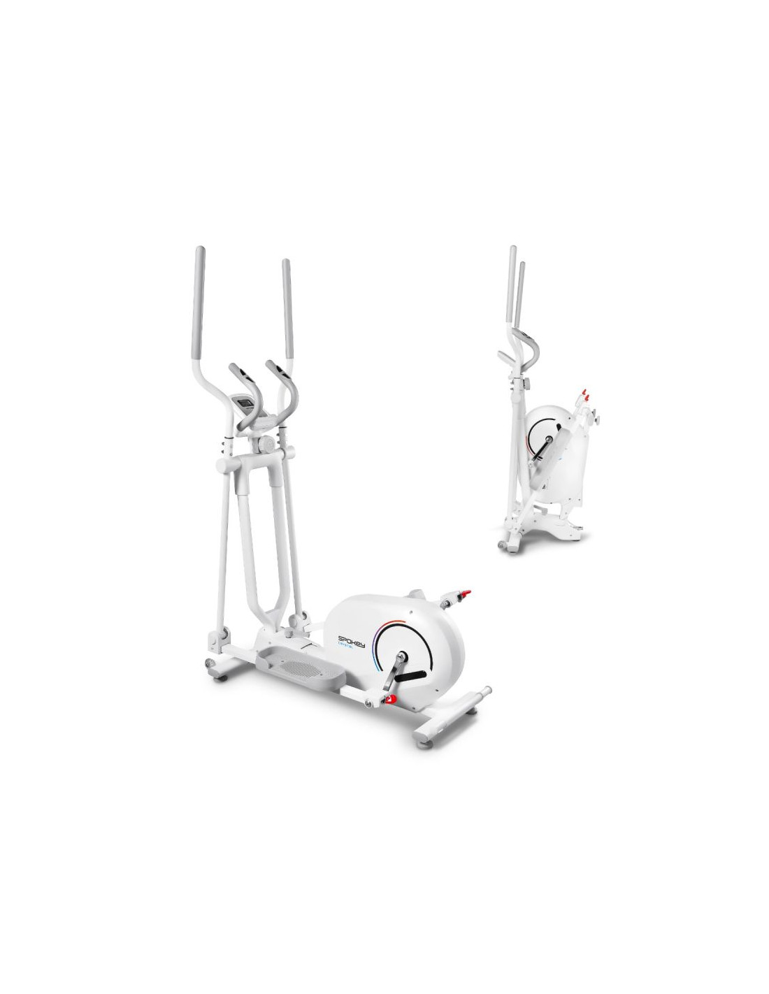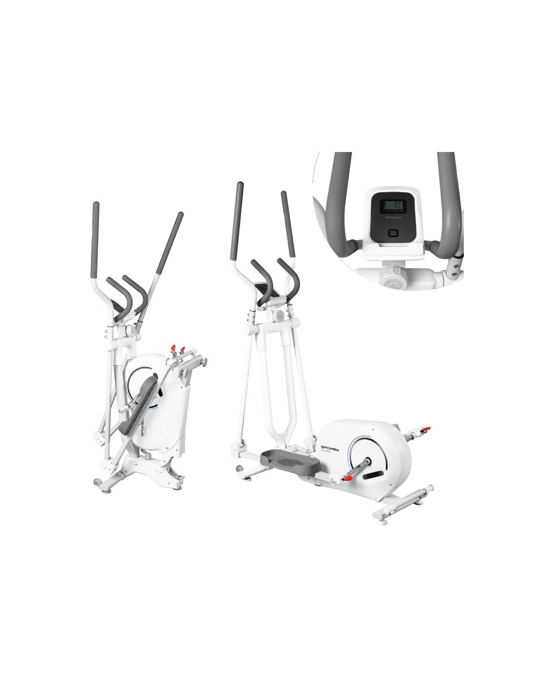 CRYSTAL – trenażer eliptyczny do treningu całego ciała Spokey CRYSTAL to składany trenażer eliptyczny, który pozwala zaangażować całe ciało podczas domowego treningu cardio – bez przeciążania stawów. Wyposażony w ruch wsteczny, pomiar pulsu, 8-stopniowy opór magnetyczny i wyświetlacz LCD, oferuje funkcjonalność, wygodę i oszczędność miejsca w jednym. Wprowadzenie Szukasz urządzenia, które pomoże Ci zadbać o formę bez wychodzenia z domu? Trenażer eliptyczny Spokey CRYSTAL to idealny wybór dla osób, które chcą połączyć skuteczny trening całego ciała z komfortem i oszczędnością miejsca. Dzięki magnetycznemu oporowi, cichej pracy i możliwości złożenia, trenażer CRYSTAL sprawdzi się nawet w niewielkich przestrzeniach. Urządzenie angażuje najważniejsze grupy mięśniowe, nie obciążając stawów – dlatego doskonale nadaje się zarówno dla początkujących, jak i zaawansowanych użytkowników. Dlaczego warto wypróbować rowerek treningowy Spokey ZEN? Trening całego ciała bez obciążania stawówRuch eliptyczny angażuje mięśnie nóg, rąk, pleców i brzucha, jednocześnie chroniąc stawy przed nadmiernym naciskiem – idealny wybór dla osób w każdym wieku.Ruch wsteczny dla urozmaicenia ćwiczeńMożliwość poruszania się także do tyłu pozwala aktywować dodatkowe partie mięśni i wzbogacić codzienny trening.8-stopniowy opór magnetycznyRęczna regulacja oporu pozwala dopasować poziom intensywności ćwiczeń do indywidualnych potrzeb – od rozgrzewki po intensywny trening cardio.Pomiar pulsu i dane treningoweWbudowane sensory pulsu oraz ekran LCD pomagają monitorować kondycję i postępy: czas, prędkość, dystans, spalone kalorie i całkowity przebieg (ODO).Składany z kółkami transportowymiPo zakończeniu ćwiczeń trenażer bez trudu można złożyć i schować w dogodnym miejscu. Uchwyt na tablet lub smartfonUchwyt zapewnia możliwość wygodnego korzystania z multimediów lub aplikacji fitness w trakcie ćwiczeń. Szczegółowy opisTrenażer Spokey CRYSTAL to uniwersalny trenażer eliptyczny, który łączy skuteczność treningu z pełnym komfortem użytkowania. Dzięki 4-kilogramowemu kołu zamachowemu z dwukierunkowym ruchem ćwiczenia są płynne i bardziej zróżnicowane. Dodatkowo, 8-stopniowa regulacja oporu magnetycznego sprawia, że sprzęt sprawdzi się zarówno dla osób początkujących, jak i zaawansowanych. Ergonomiczna konstrukcja z długością kroku 31 cm zapewnia naturalny i komfortowy ruch dla każdego użytkownika. Dużą zaletą sprzętu jest funkcja składania – po złożeniu trenażer zajmuje znacznie mniej miejsca, więc łatwiej go schować. Dane techniczne Typ: trenażer eliptyczny Rodzaj oporu: magnetyczny, ręczny Liczba stopni oporu: 8 Waga koła zamachowego: 4 kg (dwukierunkowe) Funkcje wyświetlacza: czas, prędkość, dystans, kalorie, puls, przebieg całkowity (ODO), scan Długość kroku: 31 cm Pomiar pulsu: tak (czujniki w uchwytach) Wymiary: 121 × 61,5 × 157,5 cm Wymiary po złożeniu: 54,5 × 61,5 × 158 cm Składanie: tak Korba: 3-częściowa wysokiej jakości Uchwyt na tablet/smartfon: tak Kółka transportowe: tak Waga urządzenia: 33 kg Maksymalna waga użytkownika: 130 kg Certyfikaty, normy i ostrzeżenia Zgodność z normami bezpieczeństwa UE. Produkt przeznaczony wyłącznie do użytku domowego. Urządzenie nie jest przeznaczone dla dzieci. Użytkowanie i pielęgnacja Trenuj w dobrze wentylowanym pomieszczeniu i na płaskiej powierzchni Używaj obuwia sportowego z dobrą przyczepnością Po każdym treningu przetrzyj uchwyty i pulpit suchą szmatką Regularnie sprawdzaj mocowania i stabilność sprzętu Nie używaj trenażera na zewnątrz lub w wilgotnym otoczeniu Składaj i przechowuj w pozycji pionowej w suchym miejscu Przed pierwszym użyciem zapoznaj się z instrukcją obsługi. Unikaj kontaktu z wodą i przechowuj sprzęt w suchym miejscu. Odłącz zasilanie, gdy nie używasz sprzętu przez dłuższy czas. Najczęściej zadawane pytaniaCzy trenażer CRYSTAL nadaje się dla początkujących?Tak, 8-stopniowy opór magnetyczny pozwala zaczynać od lekkich ćwiczeń i zwiększać intensywność stopniowo. Czy na CRYSTAL można “chodzić do tyłu”?Tak – dwukierunkowy ruch koła zamachowego umożliwia także trening wsteczny. Jakie dane pokazuje ekran LCD?Wyświetlacz informuje o czasie treningu, prędkości, pokonanym dystansie, spalonych kaloriach, pulsie oraz całkowitym przebiegu (ODO). Czy urządzenie jest ciche?Tak – opór magnetyczny zapewnia bardzo cichą pracę, dzięki czemu możesz ćwiczyć nawet wieczorem bez obaw o spokój domowników. Jakie partie ciała pracują podczas treningu na CRYSTAL?Trenażer eliptyczny angażuje jednocześnie dolne i górne partie ciała – mięśnie nóg, pośladków, brzucha, pleców i ramion. To efektywny trening cardio, który wzmacnia całe ciało przy minimalnym obciążeniu stawów. Informacje dotyczące bezpieczeństwa: UWAGA! Jeśli odczuwasz ból lub ucisk w klatce piersiowej, nieregularne bicie serca, duszność, czujesz się słabo lub odczuwasz dyskomfort podczas ćwiczeń, NATYCHMIAST PRZERWIJ TRENING! Przed kontynuowaniem skonsultuj się z lekarzem. To urządzenie nie jest przeznaczone dla osób (