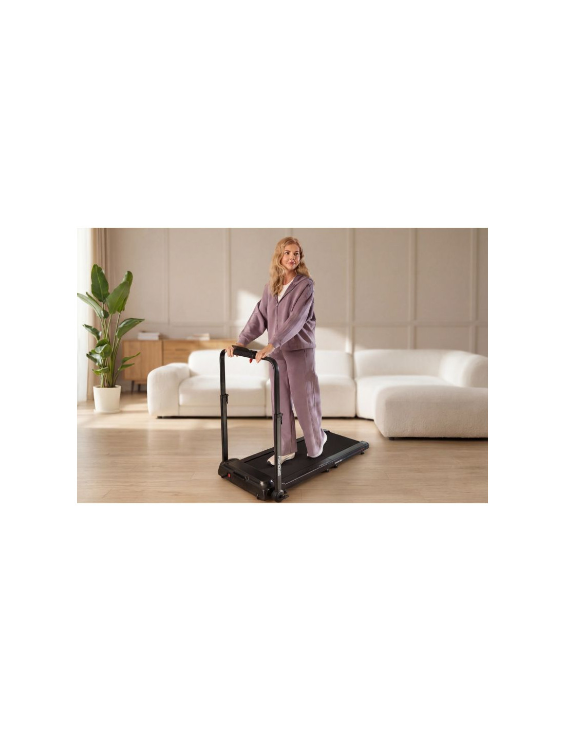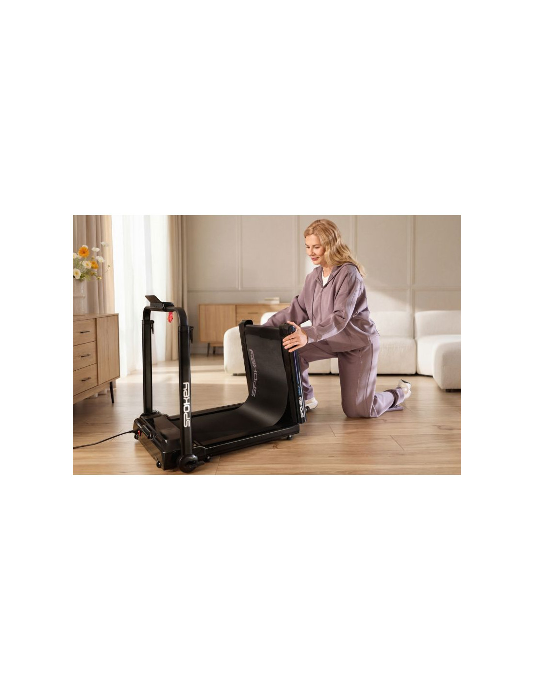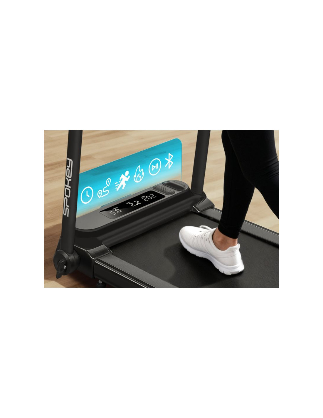 Składana bieżnia elektryczna typu walking pad DASH+ Spokey DASH+ to kompaktowa, składana na pół bieżnia typu walking pad, która sprawdzi się idealnie w domowych warunkach. Wyposażona w Bluetooth, uchwyt na telefon, klucz bezpieczeństwa i sterowanie pilotem, oferuje komfortowy trening nawet na niewielkiej przestrzeni. Wprowadzenie Spokey DASH+ to nowoczesna, składana na pół bieżnia typu walking pad, która łączy funkcjonalność z oszczędnością miejsca. Dzięki kompaktowej konstrukcji, wyświetlaczowi LED i intuicyjnemu pilotowi, bieżnia DASH+ sprawdzi się doskonale w domowych warunkach, umożliwiając komfortowy trening marszowy. Dodatkowe funkcje, takie jak Bluetooth, klucz bezpieczeństwa oraz uchwyt na smartfon, zwiększają wygodę i bezpieczeństwo użytkowania. Dlaczego warto wypróbować bieżnię elektryczną Spokey DASH+? BluetoothFunkcja Bluetooth umożliwia podłączenie zewnętrznych urządzeń, takich jak telefon czy tablet, bezpośrednio do bieżni. Dzięki temu możesz sterować muzyką z poziomu pilota, słuchać ulubionych utworów podczas treningu. Składana na półDASH+ została zaprojektowana z myślą o użytkownikach, którzy cenią sobie oszczędność miejsca. Bieżnia składa się na pół, co znacząco ułatwia jej przechowywanie – zarówno w pozycji pionowej, jak i poziomej. Idealne rozwiązanie do mniejszych mieszkań i domowych siłowni. Klucz bezpieczeństwaDla komfortu użytkowania bieżnię wyposażono w specjalny klucz bezpieczeństwa, który umożliwia natychmiastowe zatrzymanie pracy urządzenia w sytuacjach awaryjnych. Uchwyt na smartfonZintegrowany uchwyt na telefon lub tablet sprawia, że ulubione multimedia, aplikacje treningowe lub filmy masz zawsze na wyciągnięcie ręki. Możesz wygodnie korzystać z urządzenia mobilnego w trakcie marszu, bez obawy o jego stabilność. Pilot do regulacji prędkościDo bieżni dołączony jest pilot, który umożliwia płynną i wygodną regulację prędkości bez potrzeby zatrzymywania się. Co więcej, za pomocą pilota możesz również przełączać utwory w sparowanym urządzeniu, co jeszcze bardziej upraszcza obsługę i pozwala skupić się na treningu. Szczegółowy opis Bieżnia DASH+ to idealny wybór dla osób, które chcą trenować w komfortowych warunkach bez konieczności poświęcania dużej przestrzeni na sprzęt sportowy. Jej kompaktowa konstrukcja pozwala na łatwe przechowywanie – po treningu wystarczy ją złożyć i ustawić pionowo lub poziomo. Dzięki wyświetlaczowi LED użytkownik może śledzić najważniejsze parametry, takie jak czas, dystans, prędkość oraz kalorie. Sterowanie pilotem umożliwia płynne dopasowanie prędkości, a wbudowany moduł Bluetooth pozwala na połączenie z telefonem i sterowanie muzyką bez przerywania ćwiczeń. Bieżnię DASH+ wyposażono również w praktyczny uchwyt na smartfon i klucz bezpieczeństwa, który zapewni ochronę użytkownika w razie nagłej potrzeby zatrzymania bieżni. Dane techniczne Typ: bieżnia elektryczna (walking pad) Moc silnika: 1,25 HP DC Maksymalna prędkość: 6 km/h Wyświetlacz: LED Funkcje wyświetlacza: czas, dystans, prędkość, kalorie Rozmiar produktu: 128 × 67,5 × 97,5 cm Rozmiar po złożeniu: 79,5 x 67,5 x 16 cm Rozmiar pasa: 105 × 40 cm Przechowywanie: składana na pół, w pionie lub poziomie Waga urządzenia: 27 kg Maksymalna waga użytkownika: 110 kg Dodatki: uchwyt na smartfon, pilot, klucz bezpieczeństwa, pilot do regulacji prędkości Kółka transportowe: tak Certyfikaty, normy i ostrzeżenia Zgodność z normami bezpieczeństwa UE. Produkt przeznaczony wyłącznie do użytku domowego. Urządzenie nie jest przeznaczone dla dzieci. Użytkowanie i pielęgnacja Używaj bieżni na płaskiej, stabilnej i suchej powierzchni, z dala od wilgoci i źródeł ciepła. Przed rozpoczęciem treningu upewnij się, że bieżnia została prawidłowo rozłożona i zabezpieczona. Regularnie czyść pas bieżni i powierzchnie zewnętrzne suchą lub lekko wilgotną ściereczką. Nie używaj silnych detergentów ani środków chemicznych do czyszczenia. Nie dopuszczaj do gromadzenia się kurzu wokół silnika i mechanizmu składania. Po zakończeniu treningu odłącz bieżnię od zasilania. Składaj bieżnię wyłącznie po całkowitym zatrzymaniu i wychłodzeniu urządzenia. Przechowuj bieżnię w pozycji poziomej lub pionowej – zgodnie z miejscem i preferencją użytkownika. Regularnie sprawdzaj stan techniczny bieżni – napięcie pasa, stabilność elementów oraz sprawność pilota. Nie przekraczaj maksymalnej dopuszczalnej wagi użytkownika (110 kg). Dla własnego bezpieczeństwa nie używaj bieżni boso ani w nieodpowiednim obuwiu. Najczęściej zadawane pytaniaCzy bieżnia DASH+ nadaje się do biegania?Nie – DASH to walking pad, czyli model przeznaczony do chodzenia lub marszu. Maksymalna prędkość wynosi 6 km/h. Jakie urządzenia mogę podłączyć przez Bluetooth?Możesz połączyć telefon, tablet lub inne urządzenie mobilne, aby odtwarzać muzykę i sterować nią z poziomu pilota. Czy bieżnię można przechowywać w pozycji pionowej?Tak, DASH jest składana na pół i może być przechowywana zarówno w pionie, jak i w poziomie. Czy bieżn