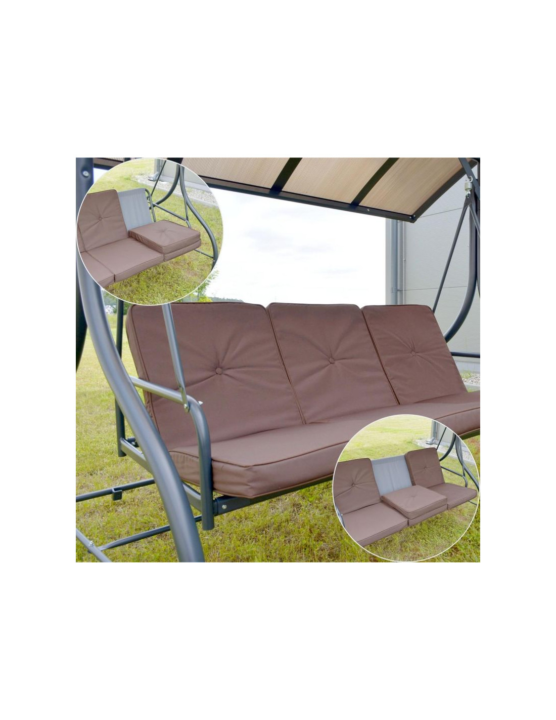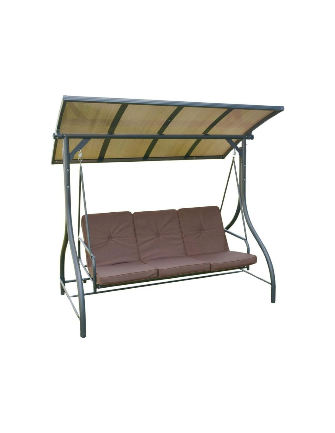 Daszek wykonany z poliwęglanu to doskonałe rozwiązanie na zmienne warunki pogodowe. Chroni przed nadmiernym nasłonecznieniem i delikatnym deszczem, dzięki czemu możesz cieszyć się odpoczynkiem nawet w kapryśną pogodę. Trwały materiał zapewnia długotrwałą ochronę, a elegancki wygląd dodaje huśtawce wyjątkowego charakteru.
