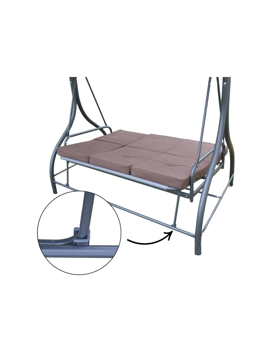 Huśtawka została zaprojektowana z myślą o maksymalnym komforcie użytkowania. Jej przestronne siedziska i poduszki z wypełnieniem z waty poliestrowej o grubości 7 cm, pozwalają na swobodne wypoczywanie w pozycji siedzącej lub lekko odchylonej, a delikatny ruch bujania działa relaksująco i odprężająco.