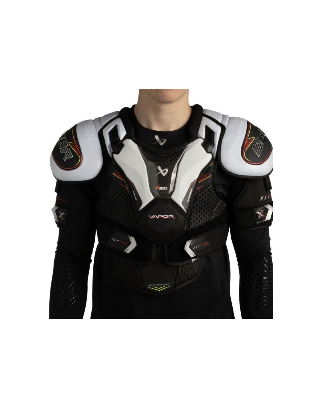 Naramienniki hokejowe Bauer Vapor Flypro Sr Naramienniki Bauer Vapor Flypro Sr to sprzęt stworzony dla zawodników, którzy potrzebują połączenia zaawansowanej ochrony i pełnej mobilności. Wykonane z lekkich, a zarazem niezwykle trwałych materiałów, stanowią idealny wybór dla graczy rywalizujących na najwyższym poziomie. Główne cechy: Większa ochrona. Mniejsza waga: Zastosowanie lekkiego kompozytu CURV®, pianki HYPERLITE oraz przeprojektowanej konstrukcji kręgosłupa i żeber sprawia, że naramienniki Flypro Sr oferują wyższy poziom ochrony niż poprzednie modele – bez dodatkowego ciężaru. To gwarancja pewności siebie w każdej sytuacji na lodzie. Zawsze na swoim miejscu: Anatomicznie uformowana wkładka i wstępnie wygięte panele żeber sprawiają, że ochraniacz doskonale przylega do ciała, nie przesuwa się i zachowuje stabilność nawet podczas twardych starć czy upadków. Sprzęt pracuje razem z Tobą – od pierwszego gwizdka do końca meczu. Mobilność bez ograniczeń: Pływający mostek HYPERLITE HD oraz niezależnie działające bicepsy wykonane z kompozytu CURV® zapewniają maksymalną swobodę ruchów, niezależnie od tego, czy ścigasz się z rywalem, czy blokujesz groźny strzał. Naramienniki Bauer Vapor Flypro Sr to idealne rozwiązanie dla graczy, którzy oczekują najwyższego poziomu ochrony i komfortu bez kompromisów w zakresie szybkości i mobilności. PARAMETRY TECHNICZNE Przeznaczenie Hokej na lodzie, zawodnik pola Sr Ramię Niskoprofilowy AEROLITE 2.0 z wkładkami CONNEKTOR Mostek Ruchoma osłona mostka z kompozytu CURV zapewniająca lekką ochronę Przednie panele Rozdzielany korpus FLEXPRENE z formowaną wkładką żeber Kręgosłup Formowana ochrona z wkładką PE Tylne panele Pełne zakrycie z rozszerzoną ochroną żeber Łuk ramienny Zintegrowany, formowana wkładka z pianki PE Biceps Regulowany z formowaną wkładką PE Wyściółka THERMO MAX+ – komfortowa, szybkoschnąca tkanina odprowadzająca pot
