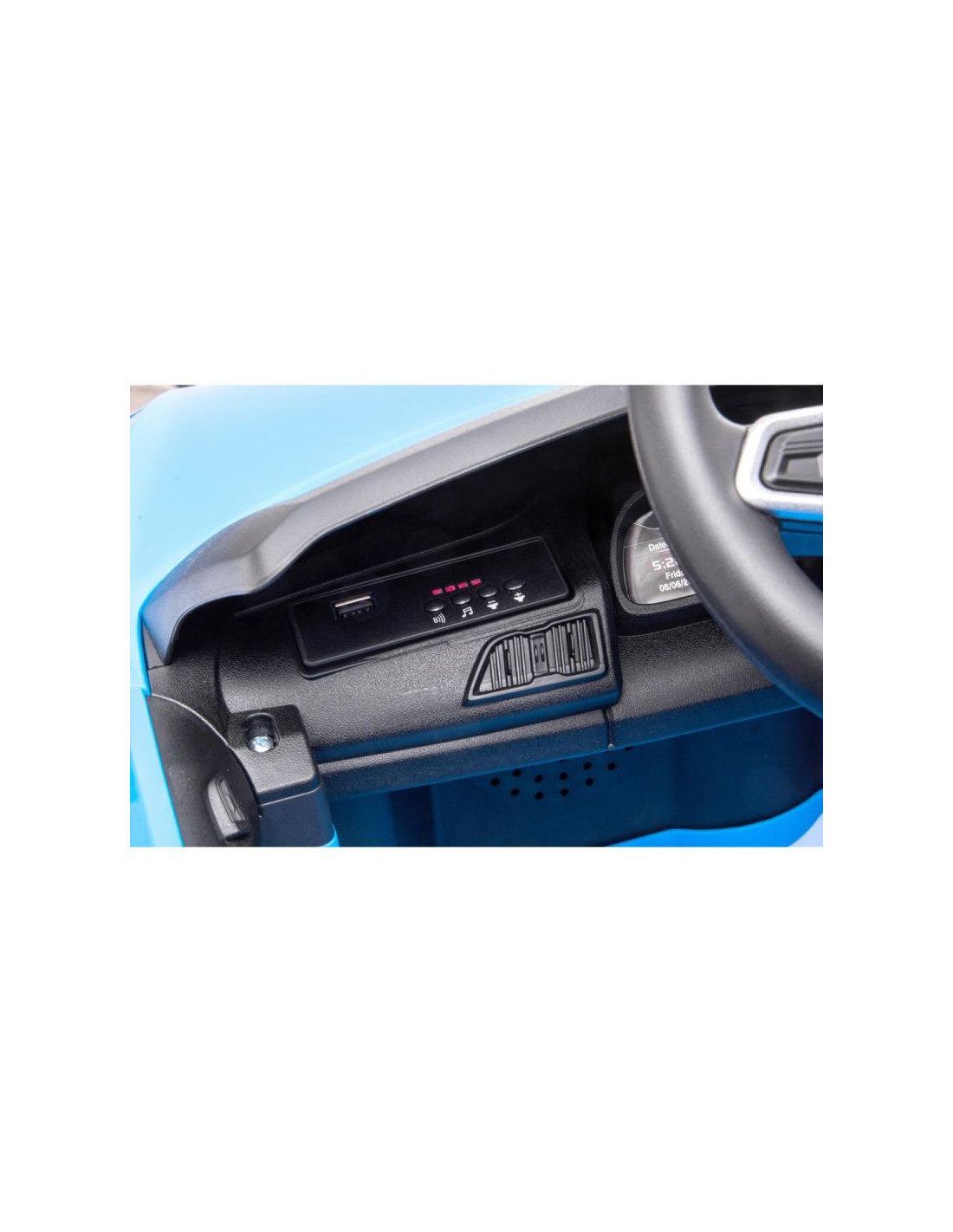 Przejażdżkę umili Twojemu dziecku muzyka, wydobywająca się naciśnięciu odpowiedniego guzika. Przechodni ostrzeże klakson, umieszczony w panelu głównym.