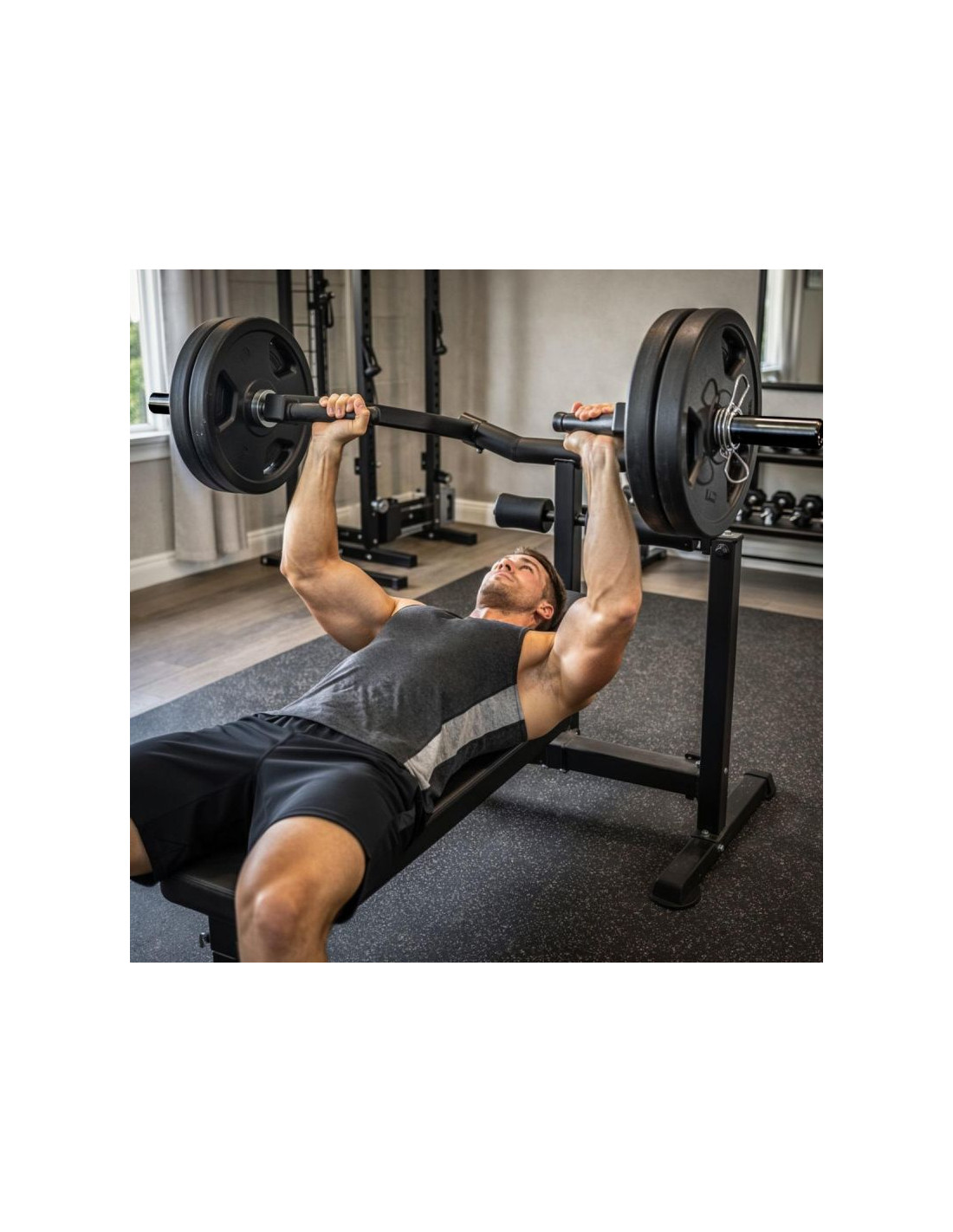 - możliwość dokładania talerzy na ramiona oferuje elastyczne dopasowanie obciążenia do poziomu treningu