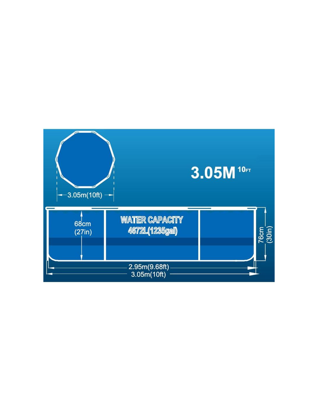 Wymiary 305x76 cm sprawiają, że basen oferuje wystarczająco dużo miejsca do swobodnego pływania i relaksu. Idealny dla rodzin z dziećmi oraz dla osób szukających wygodnego basenu do ogrodu lub na działkę.