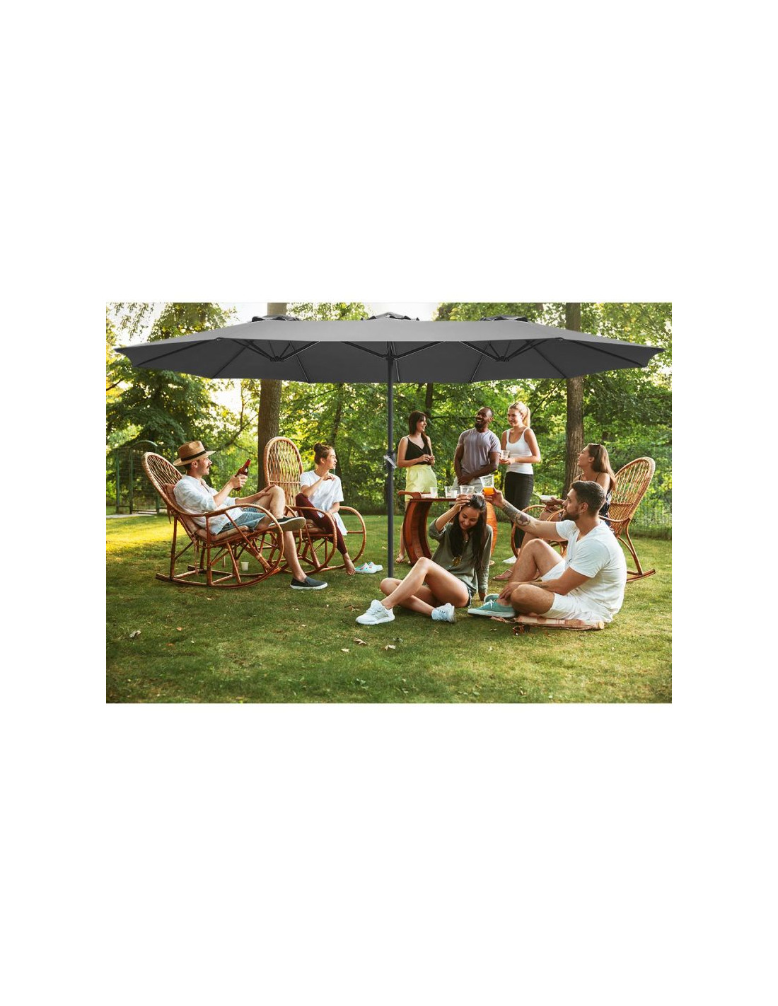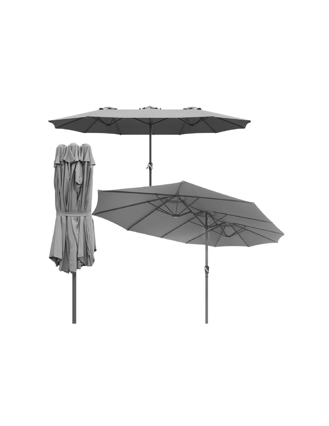 Parasol Ogrodowy XXXL 2.7x4.6M szary oferuje niezwykłą przestrzeń zacienienia, idealną dla dużych ogrodów, tarasów i przestrzeni rekreacyjnych. Dzięki swoim imponującym wymiarom, zapewnia komfortowe miejsce do odpoczynku dla całej rodziny oraz gości.