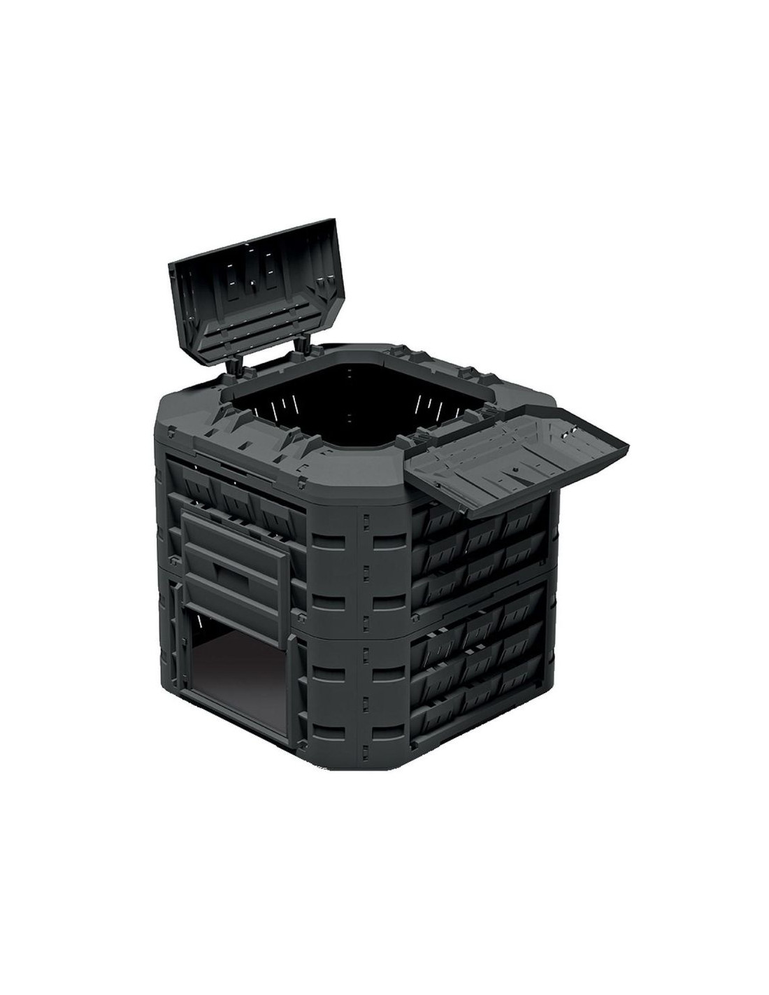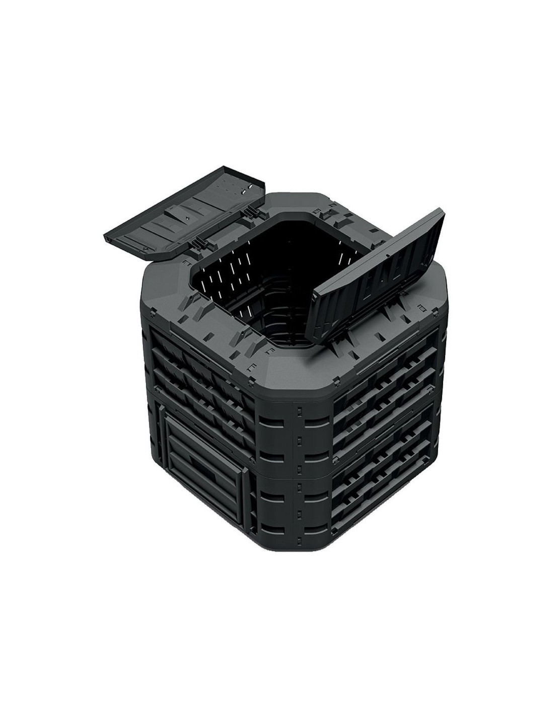 Kompostownik wyposażony jest w praktyczne podajniki, które umożliwiają łatwe wybieranie gotowego kompostu bez konieczności przerzucania całej zawartości. Dzięki temu możesz na bieżąco korzystać z wartościowego nawozu i dostarczać roślinom naturalne składniki odżywcze bez zbędnego wysiłku.