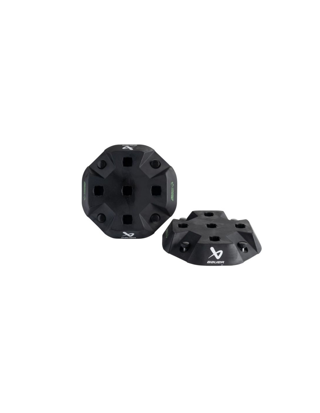 Podstawa systemu treningowego Bauer Modular Rozbuduj swoje centrum treningowe dzięki dodatkowym podstawom modułowego systemu szkoleniowego Bauer Modular. Te solidne podstawy zapewniają stabilną bazę dla narzędzi szkoleniowych, umożliwiając graczom pełne skupienie się na doskonaleniu umiejętności. Główne cechy: Kołki cumownicze: Każda podstawa posiada kołki, które można zakotwiczyć w lodzie lub innych powierzchniach, co zapobiega przesuwaniu się podczas treningu. Konstrukcja bez narzędzi: System montażu nie wymaga dodatkowych narzędzi, a niestandardowa śruba z uchwytem ułatwia szybkie i bezproblemowe ustawienie. Gumowa konstrukcja: Wykonana z gumy, która zapewnia maksymalną stabilność i trwałość, jednocześnie chroniąc ostrza łyżew hokejowych przed uszkodzeniami w przypadku nadepnięcia. Łatwe łączenie: Możliwość łatwego łączenia z różnymi modułowymi elementami szkoleniowymi, co pozwala na rozbudowę zestawu w miarę rozwoju umiejętności. Podstawa systemu treningowego Bauer Modular to doskonałe uzupełnienie każdego zestawu treningowego, zapewniające stabilność i wszechstronność podczas treningów na lodzie.