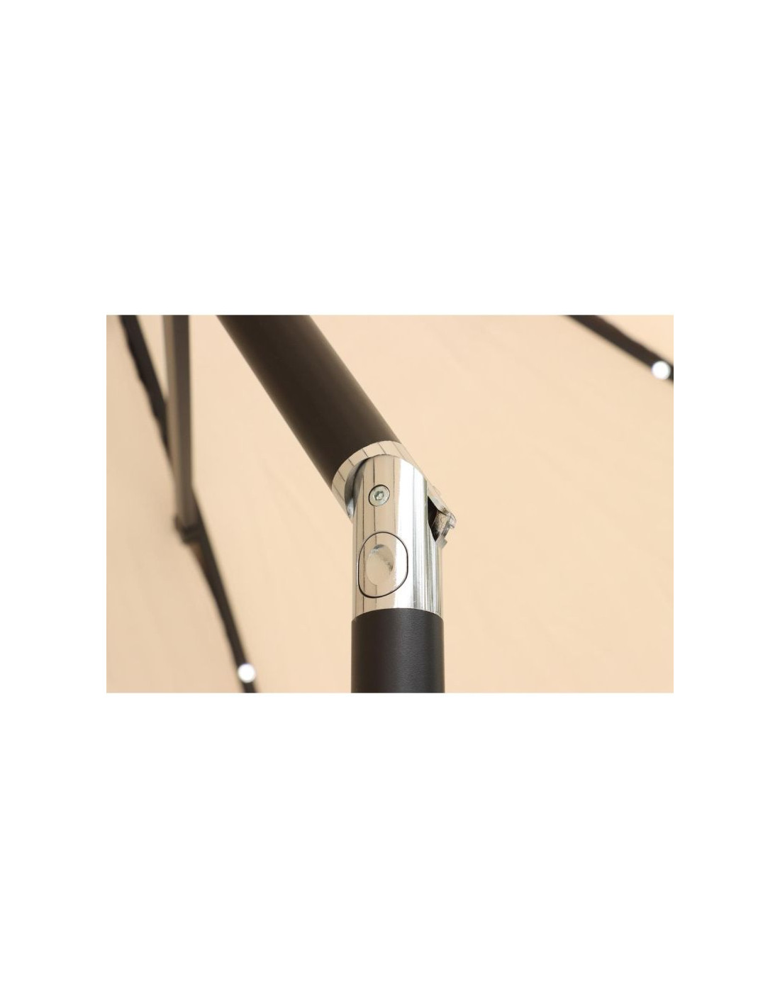 Parasol oprócz korbki za pomocą której otwierasz czaszę, posiada system regulacji konta nachylenia. Taka regulacja umożliwia dostosowanie obszaru zacienienia w trakcie dnia i pozwala na utrzymanie komfortowej temperatury nawet w gorące dni.