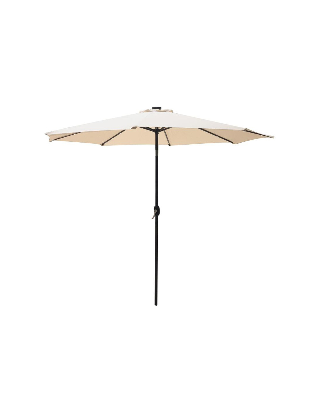 Wbudowane oświetlenie LED sprawia, że parasol może być używany również wieczorem. Daje to możliwość korzystania z ogrodu po zmroku, tworząc przyjemną, romantyczną atmosferę. Diody LED zasilane są panelem słonecznym umieszczonym na górze parasola, należy jednak pamiętać, że lampki będą prawidłowo działać tylko po naładowaniu akumulatorka w słoneczny dzień.