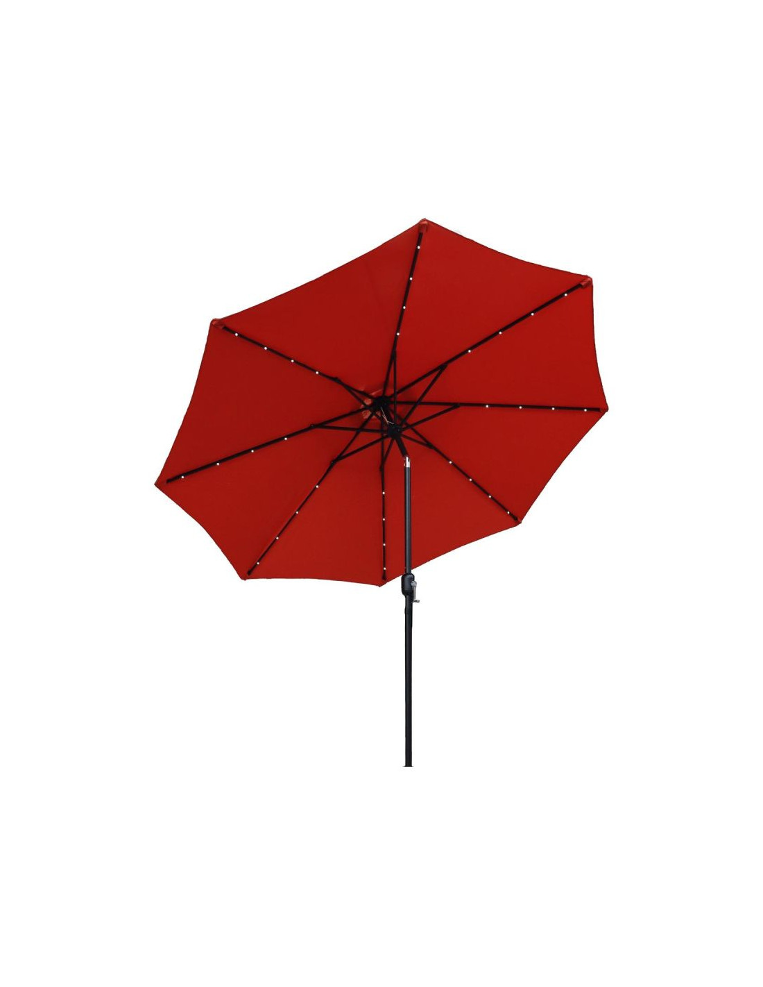 - Ilość LED: 32 (po 4 na jednym ramieniu) zasilane panelem słonecznym (dołączonym do parasola)