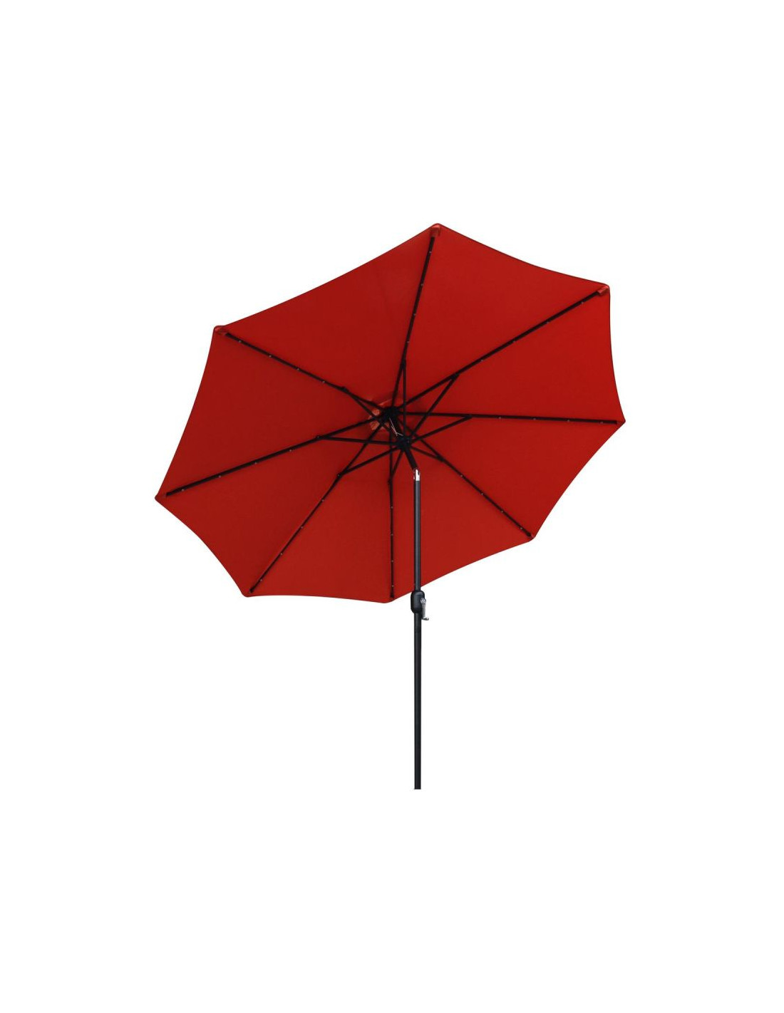 Wbudowane oświetlenie LED sprawia, że parasol może być używany również wieczorem. Daje to możliwość korzystania z ogrodu po zmroku, tworząc przyjemną, romantyczną atmosferę. Diody LED zasilane są panelem słonecznym umieszczonym na górze parasola, należy jednak pamiętać, że lampki będą prawidłowo działać tylko po naładowaniu akumulatorka w słoneczny dzień.