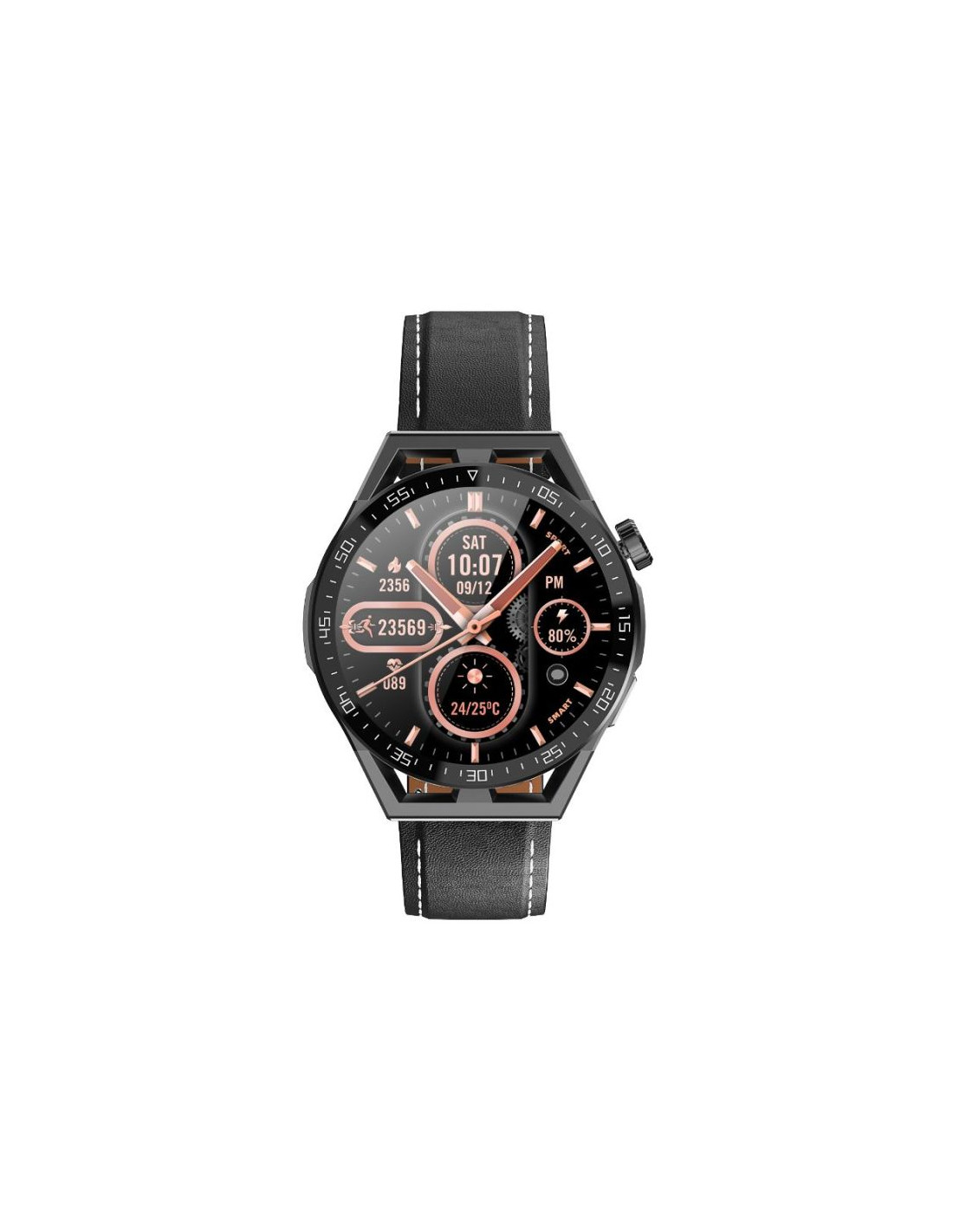 Smartwatch Rubicon RNCE88-1 Czarny- Czarny Pasek Silikonowy + Czarny Pasek Skórzany