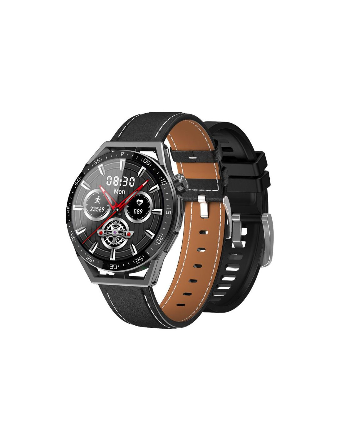 Smartwatch rubicon rnce88-1 czarny- czarny pasek silikonowy + czarny pasek skórzany