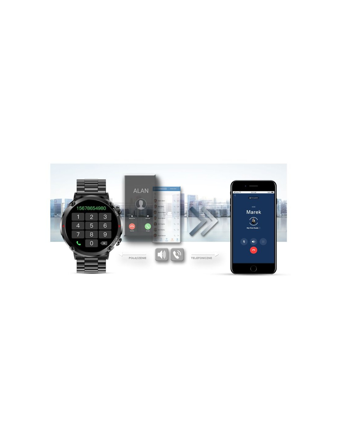 Po sparowaniu smartwatcha z twoim smartfonem, możesz bezproblemowo odbierać i wykonywać połączenia telefoniczne. Wbudowany głośnik oraz mikrofon pozwala rozmawiać bez konieczności wyciągania telefonu komórkowego.