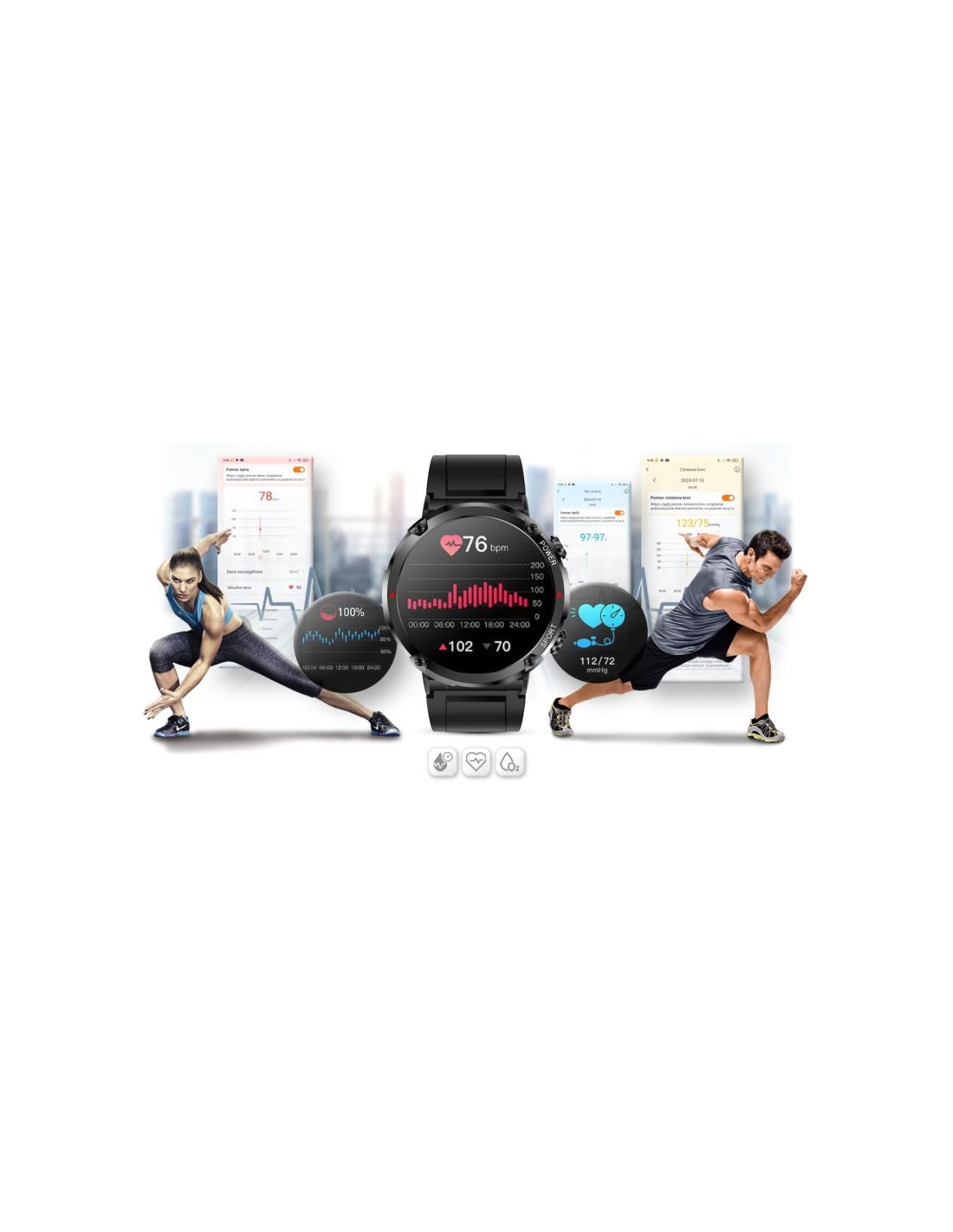 Dzięki sensorowi możesz w każdej chwili zmierzyć lub wykonać pomiar: ciśnienie krwi, tętno lub saturację - zawartość tlenu we krwi w swoim organizmie. Kontroluj wyniki podczas każdej aktywności fizycznej. Niezależnie czy jeździsz na rowerze, biegasz, czy też po prostu jesteś w pracy lub odpoczywasz. Twój smartwatch GRAVITY stanie się osobistym asystentem dbającym o twoje zdrowie każdego dnia.