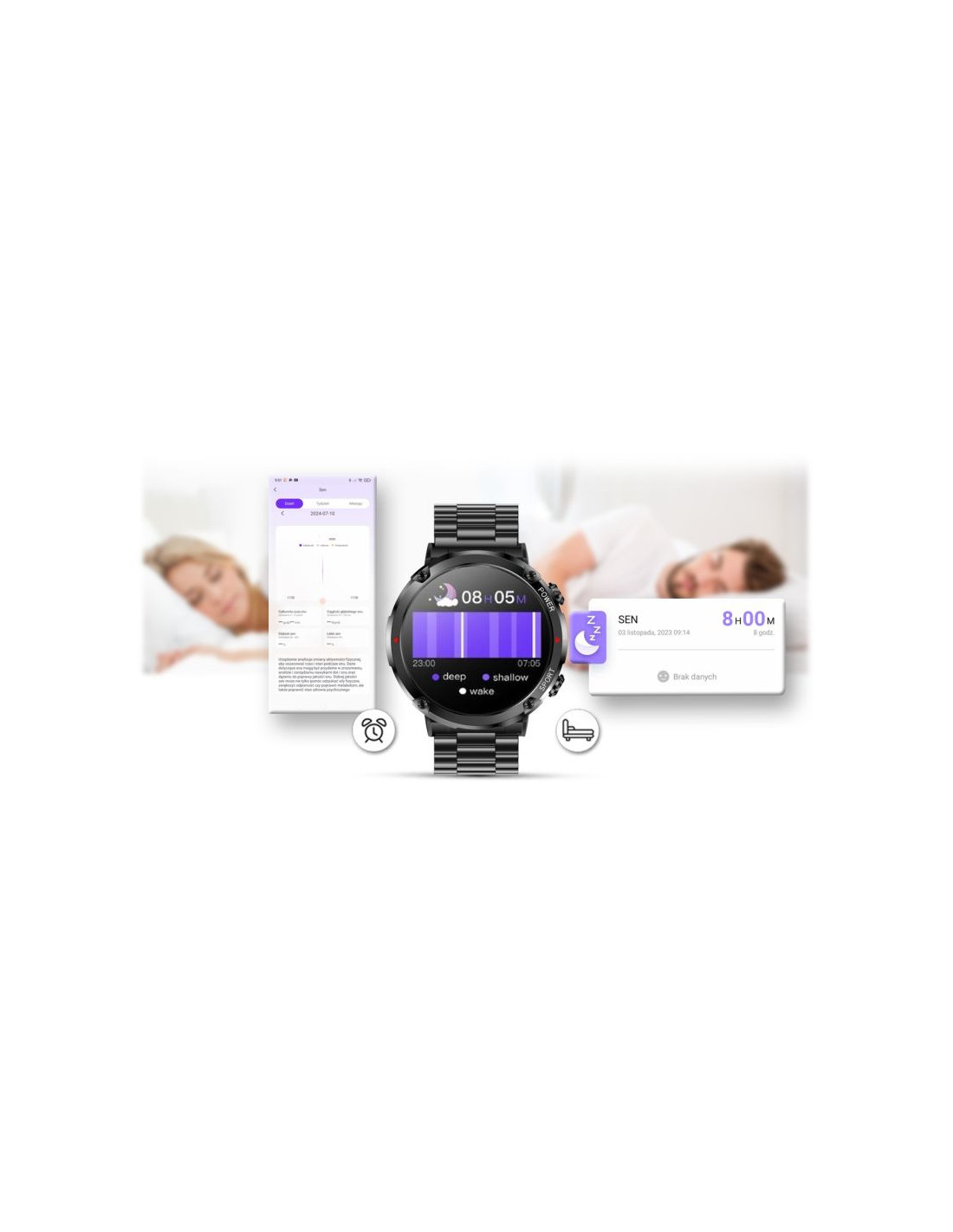 Funkcja ta pozwala monitorować czas i jakoś snu każdej nocy. Po zsynchronizowaniu danych z aplikacją możesz sprawdzać i analizować jakość swojego snu. Historia pokaże jak śpisz i czy twój sen jest dobrej jakości. Po ciężkim dniu każdy musi się wyspać, żeby nabrać sił na kolejny dzień i w tym pomoże Ci ten smartwatch.