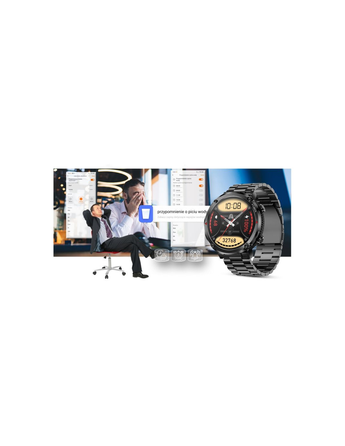 Ten smartwatch możesz połączyć ze swoim Smartfonem.Kompatybilność z systemem Android 5.0 i nowszy oraz iOS 9.0 i nowszy.Oznacza to, że smartwatch połączy się zewszystkimi telefonamina systemie ANDROID i iOS.