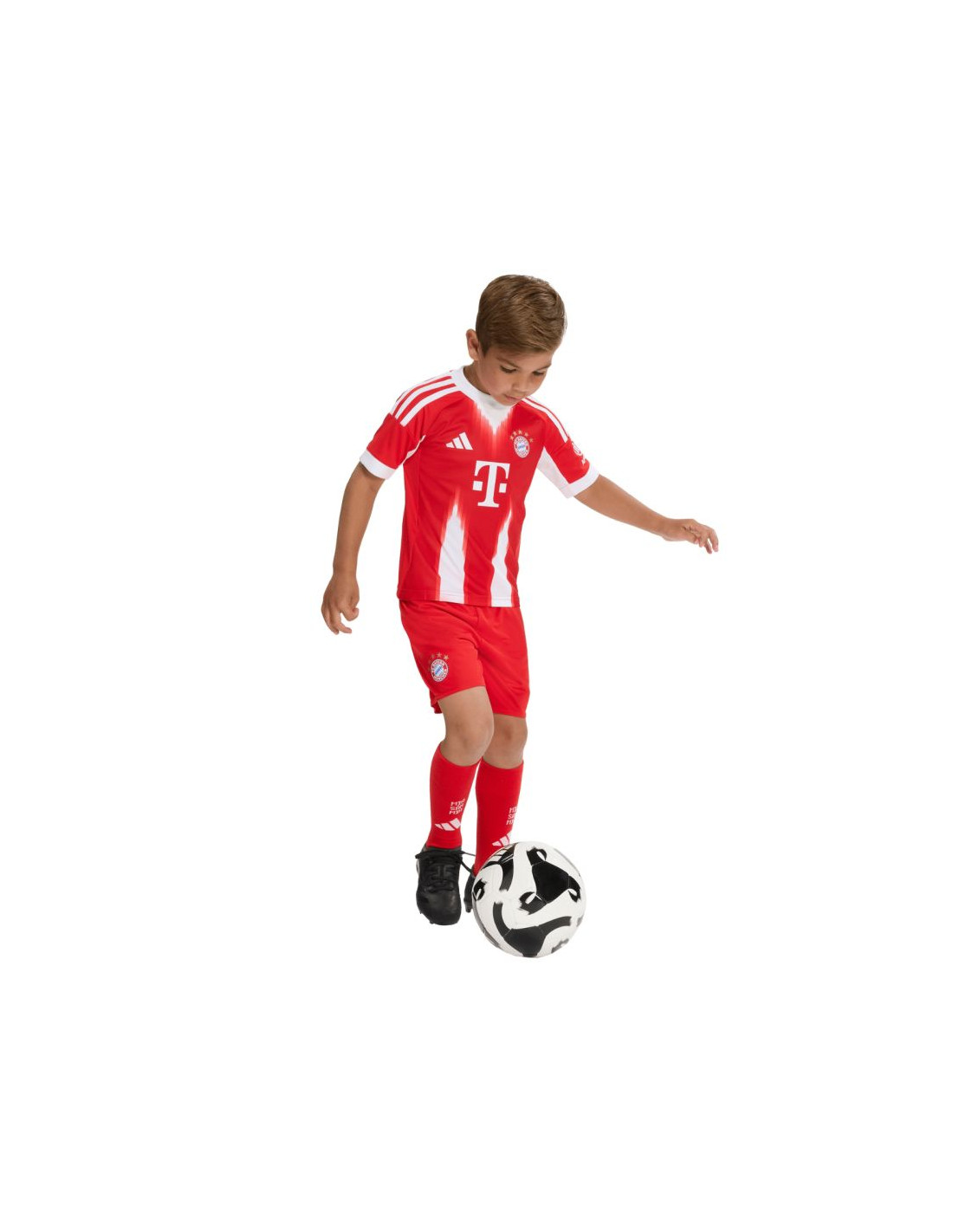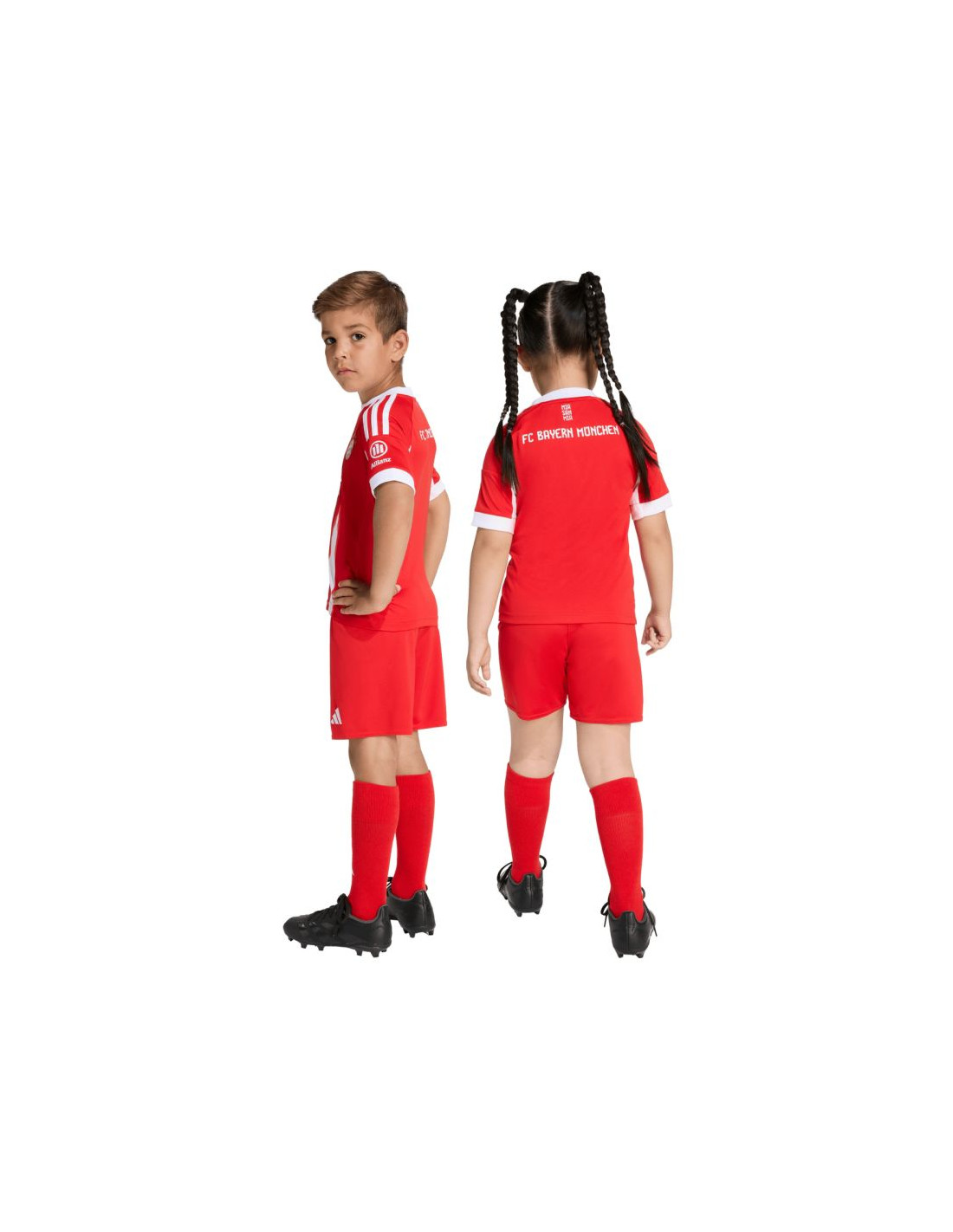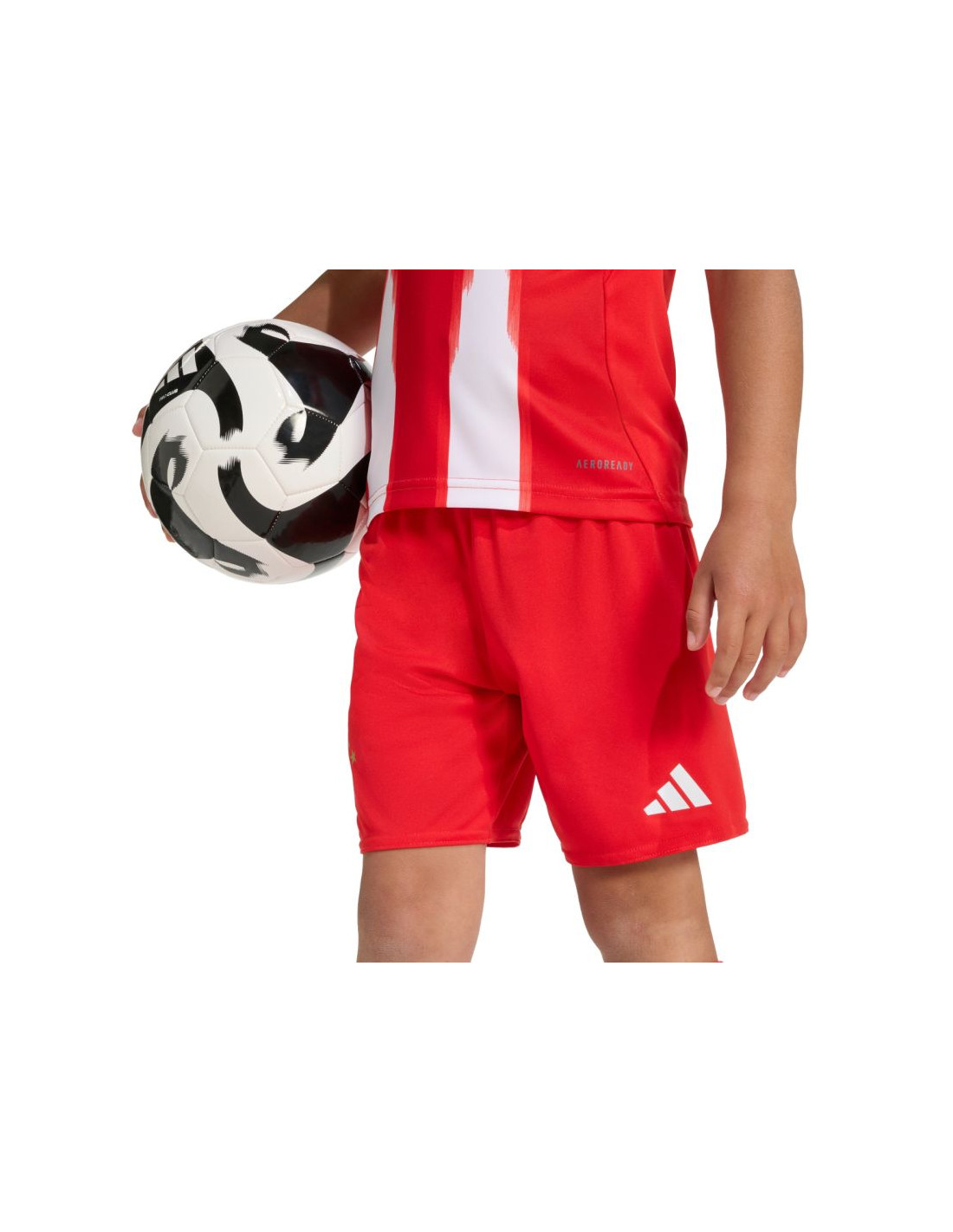 Komplet sportowy dla dzieci adidas FC Bayern 25/26 Home czerwony JN8510 Komplet dla dzieci adidas (koszulka + spodenki + getry) zachwyci młodych kibiców klubu Bayern Monachium. Szybkoschnący materiał wykorzystuje technologię Aeroready do oprowadzania nadmiaru wilgoci. Standardowy krój. Elastyczny pas w spodenkach. Godło Bayern Monachium na spodenkach i koszulce. Materiał: 100% poliester z recyklingu (koszulka i spodenki)