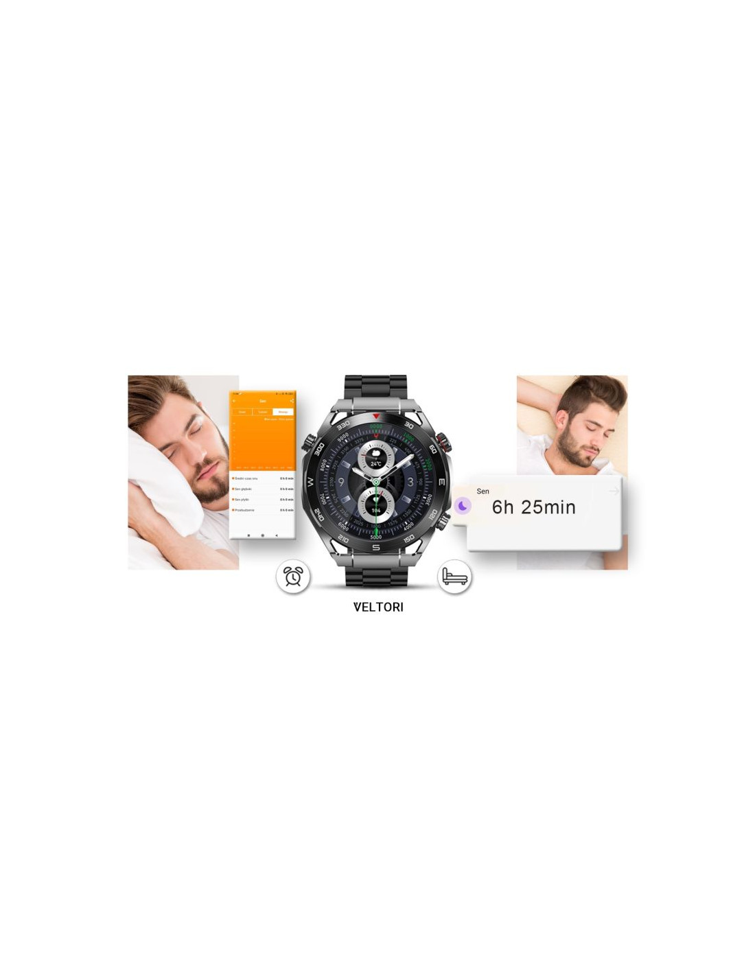 Dzięki sensorowi możesz w każdej chwili zmierzyć lub wykonać pomiar: ciśnienie krwi, tętno lub saturację - zawartość tlenu we krwi w swoim organizmie. Kontroluj wyniki podczas każdej aktywności fizycznej. Niezależnie czy jeździsz na rowerze, biegasz, czy też po prostu jesteś w pracy lub odpoczywasz. Twój smartwatch Veltori stanie się osobistym asystentem dbającym o twoje zdrowie każdego dnia.
