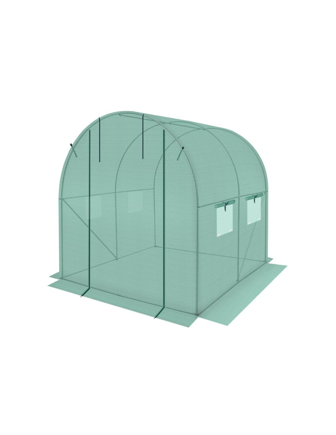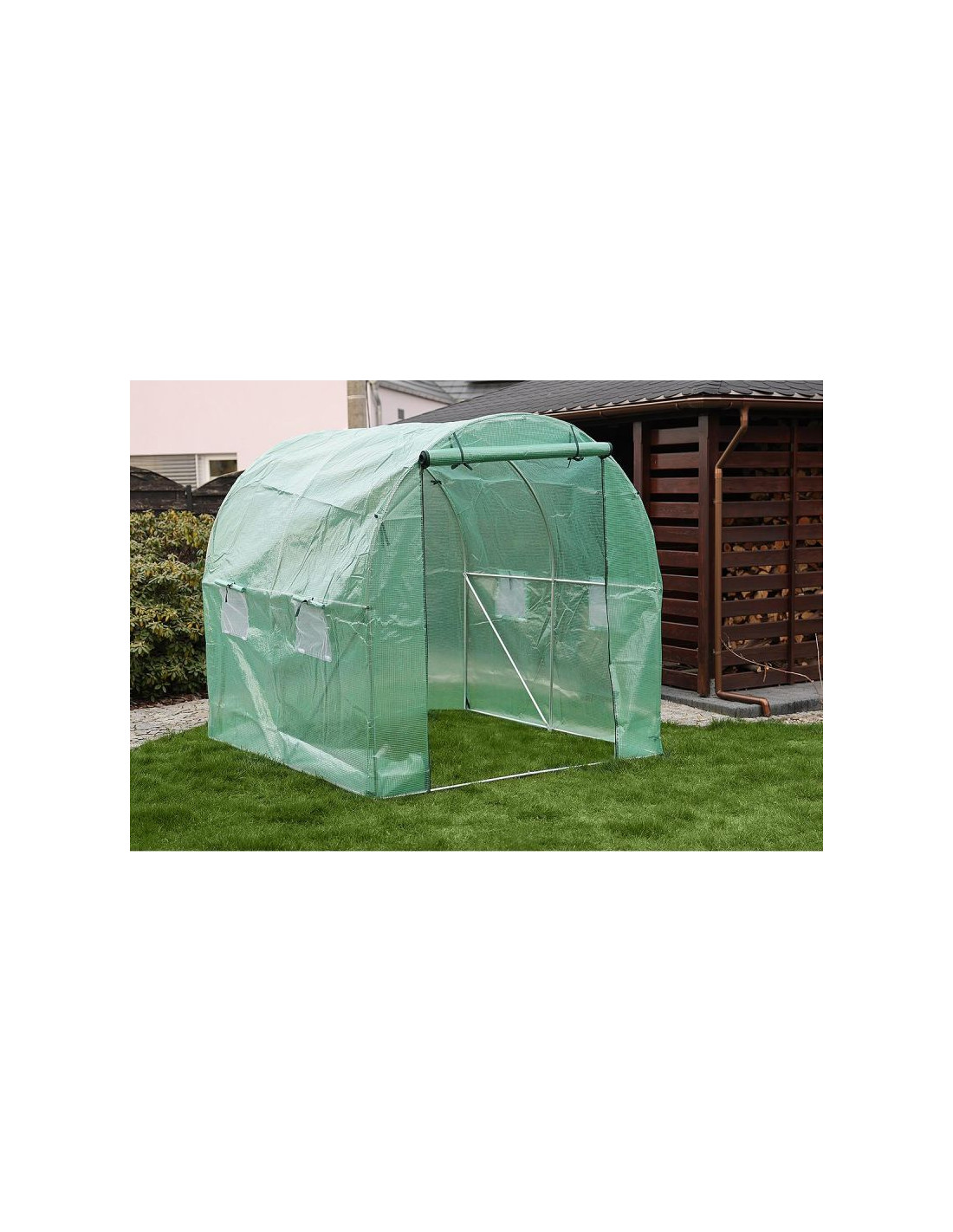 Szklarnia została zaprojektowana w przemyślany sposób. Posiada 4 okna z moskitierami i zasłonkami z folii, które chronią przed nadmiarem wilgoci zapewniając jednocześnie optymalny przepływ powietrza i odpowiedni dostęp do światła. Drzwi zamykane na zamek, pozwolą wygodnie wychodzić lub wchodzić do środka.