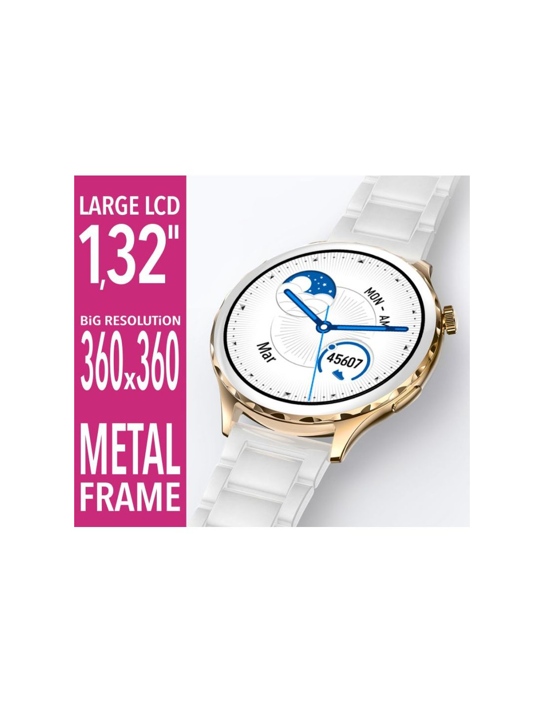 Wyobraź sobie poranek pełen pośpiechu – kawa stygnie na blacie, telefon wciąż dzwoni, a Ty próbujesz znaleźć chwilę dla siebie. Sięgasz po Rubicon, który z delikatnym blaskiem otula Twój nadgarstek złotą bransoletą mesh. Na smukłym, okrągłym wyświetlaczu MULTIdotyk TFT IPS full display jednym ruchem wybierasz tarczę, która odzwierciedla Twój nastrój – czy to klasyczna elegancja, czy odrobina nowoczesnego minimalizmu.