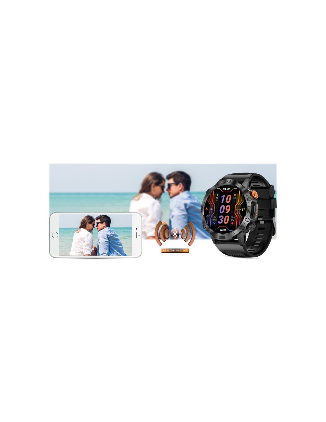 W celu połączenia zegarka należy załączyć bluetooth w telefonie komórkowym w celu sparowania urządzeń ze sobą.Dzięki temu aplikacja będzie rejestrować w twoim telefonie historię zdarzeń.