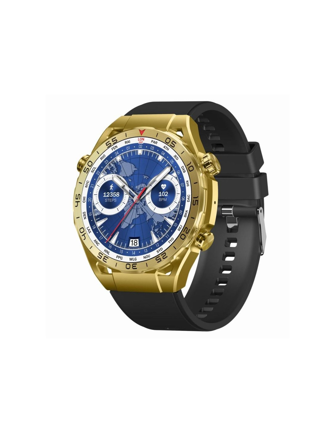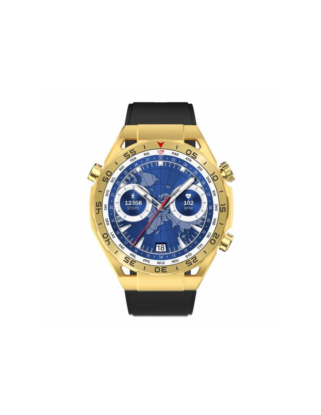 Stylowy, funkcjonalny, innowacyjny.Wytrzymała metalowa koperta, mineralne i hartowane szkło, ekran dotykowy 1,39 cala o rozdzielczości 360*360 pikseli, funkcja rozmowy, sterowanie odtwarzaczem muzyki, mnóstwo trybów sportowych, mocna bateria.