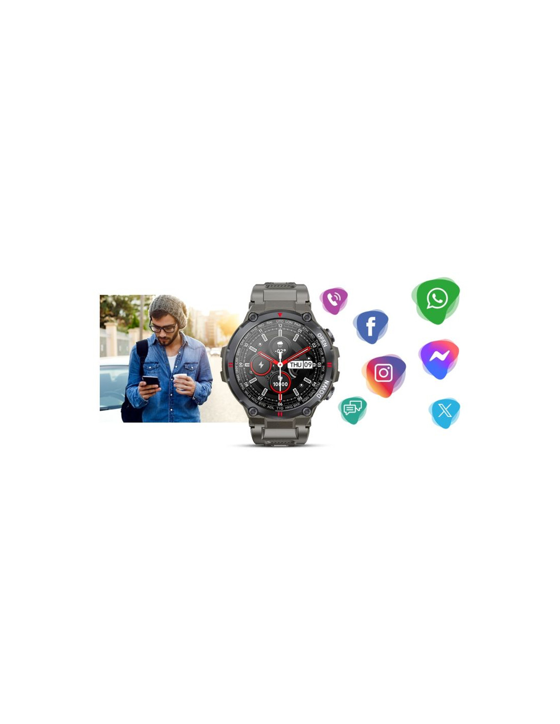 Z tym smartwatchem nie przegapisz tego, co ważne. Od teraz wiadomości SMS oraz z Facebook, Twitter, Whatsapp, Skype itp. wyświetlane są na tarczy w czasie rzeczywistym. Nie musisz odrywać się od pracy czy aktywności - wystarczy podnieść rękę, aby wyświetlić wiadomości!