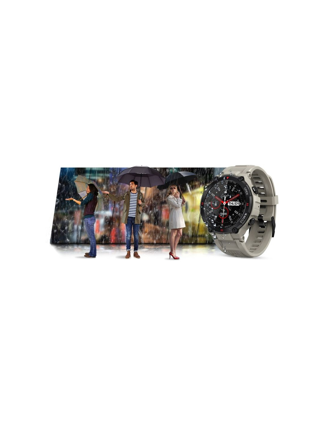 Dobry sprzęt powinien nadążać za właścicielem, dlatego smartwatch posiada klasę wodoszczelności IP67. Smartwatch odporny jest na lekkie zachlapania i delikatny kontakt z wodą. Smartwatch jest również odporny na delikatnypył i kurz atmosferyczny.W smartwatchu nie można nurkować, skakać do wody, używać w saunie lub narażać na kontakt z słoną, gorącą lub lodowatą wodą.