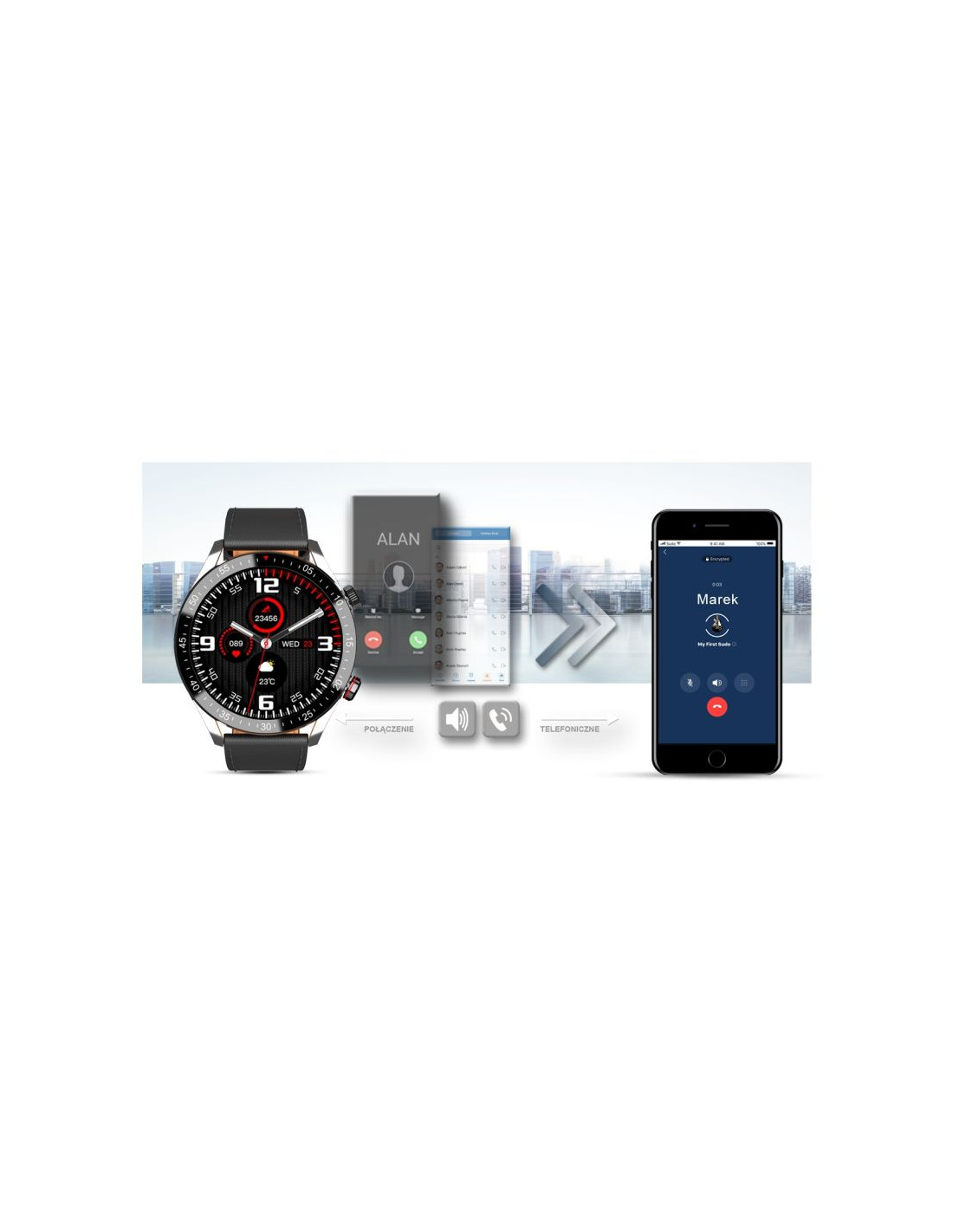 Po sparowaniu smartwatcha z twoim smartfonem, możesz bezproblemowo odbierać i wykonywać połączenia telefoniczne. Wbudowany głośnik oraz mikrofon pozwala rozmawiać bez konieczności wyciągania telefonu komórkowego.