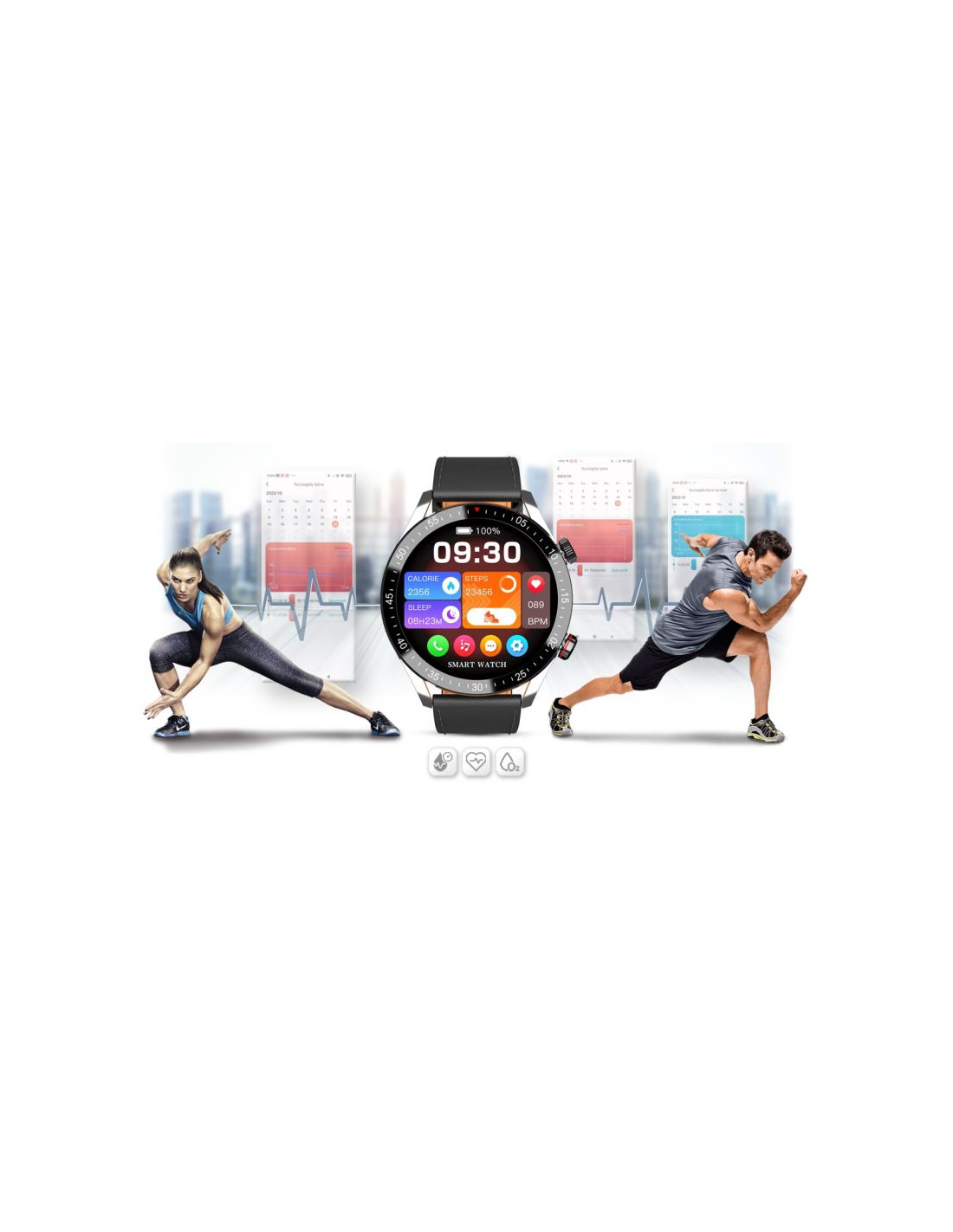 Dzięki sensorowi możesz w każdej chwili zmierzyć lub wykonać pomiar: ciśnienie krwi, tętno lub saturację - zawartość tlenu we krwi w swoim organizmie. Kontroluj wyniki podczas każdej aktywności fizycznej. Niezależnie czy jeździsz na rowerze, biegasz, czy też po prostu jesteś w pracy lub odpoczywasz. Twój smartwatch GRAVITY stanie się osobistym asystentem dbającym o twoje zdrowie każdego dnia.