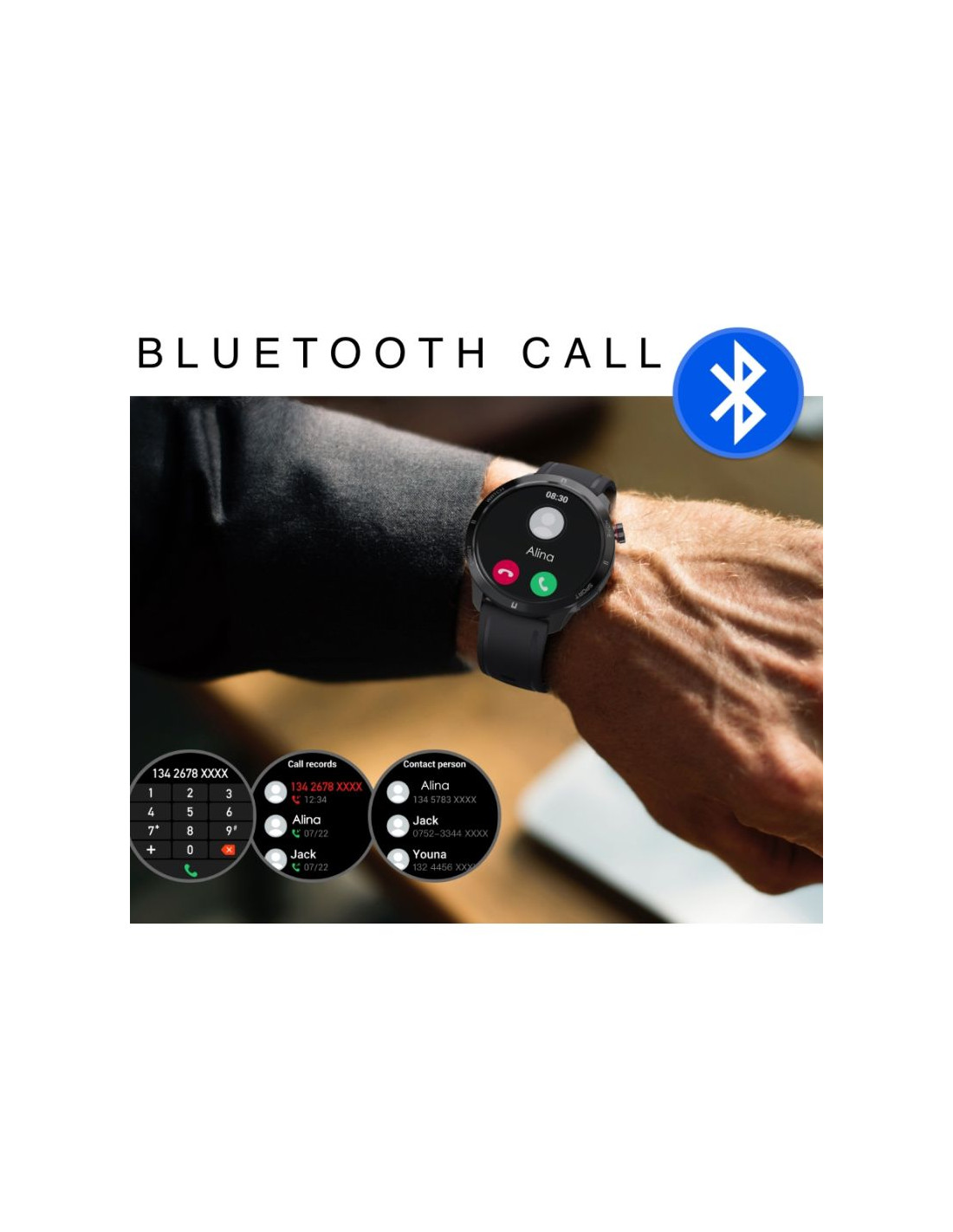 - Bluetooth Call ! wbudowany mikrofon i głośnik( możliwość szybkiego wł / wył z pozycji smartwatcha ! )
