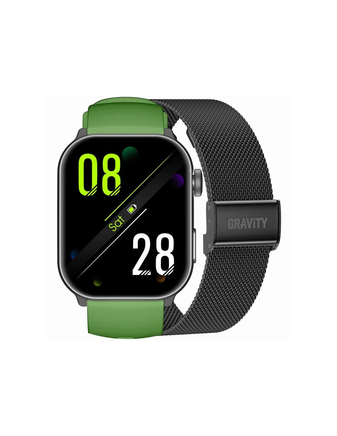 Smartwatch GRAVITY GT28 to elegancki zegarek z zaawansowanymi funkcjami, który świetnie sprawdzi się zarówno w codziennym użytkowaniu, jak i podczas aktywności sportowych. Wyposażony w prostokątną kopertę ze stopu metali i wygodny pasek (silikonowy lub mesh), prezentuje się stylowo i komfortowo leży na nadgarstku.