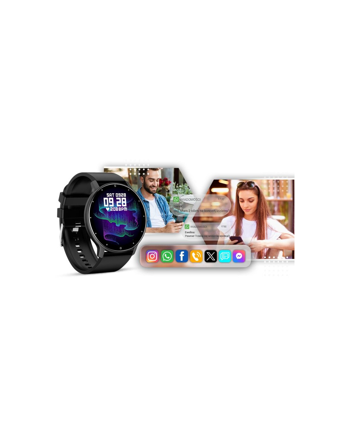 Z tym smartwatchem nie przegapisz tego, co ważne. Od teraz wiadomości SMS oraz z Facebook, Twitter, Whatsapp, Skype itp. wyświetlane są na tarczy w czasie rzeczywistym. Nie musisz odrywać się od pracy czy aktywności - wystarczy podnieść rękę, aby wyświetlić wiadomości!