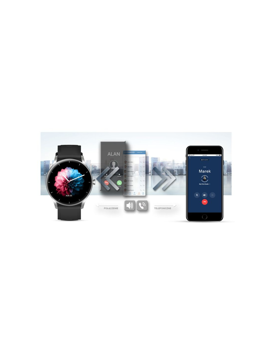Po sparowaniu smartwatcha z twoim smartfonem, możesz bezproblemowo odbierać i wykonywać połączenia telefoniczne. Wbudowany głośnik oraz mikrofon pozwala rozmawiać bez konieczności wyciągania telefonu komórkowego.