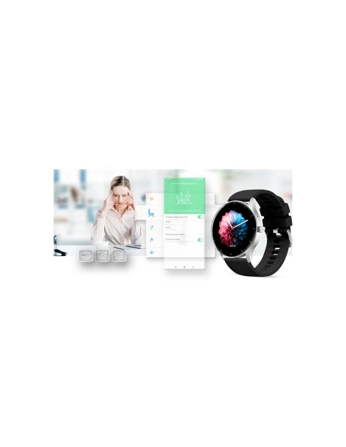 Uzyskaj harmonię pomiędzy aktywnością a wypoczynkiem! Pomoże Ci w tym takie narzędzie, jak monitor braku aktywności. Jeżeli się zasiedzisz - smartwatch GRAVITY przypomni Ci o dłuższym czasie bez aktywności. Koniec wymówek, Twój nowy smartwatch Gravity wie, że ruch to zdrowie!