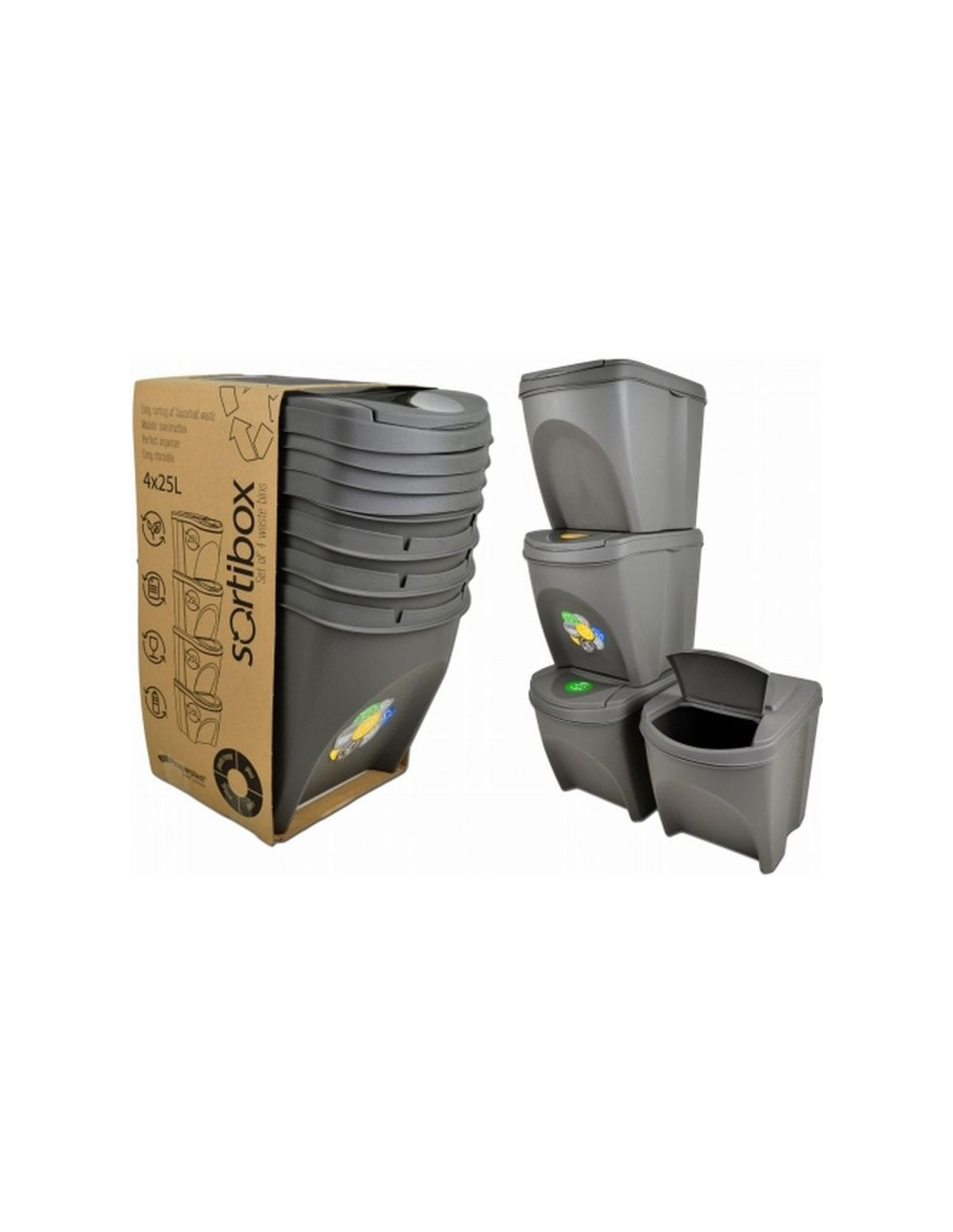 ŚMIETNIK KOSZE NA ŚMIECI 25 L SORTIBOX SET 4 SZT. BĘDZIE IDEALNY DO SEGRGACJI ODPADÓW W TWOIM DOMU.