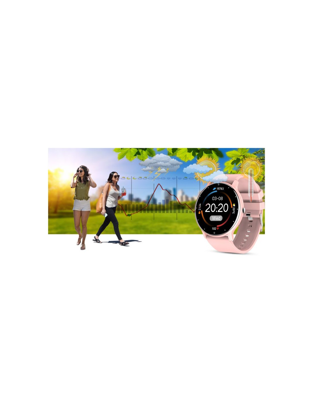 Smartwatch po podłączeniu z aplikacją wyświetla dane o pogodzie.Teraz wystarczy jedno spojrzenia na smartwatcha i już wiesz jaka pogoda będzie Ci towarzyszyć w najbliższym czasie.Dzięki pogodzie w smartwatchu możesz lepiej zaplanować swoją aktywność i ubrać się odpowiednio do otaczającej aury!