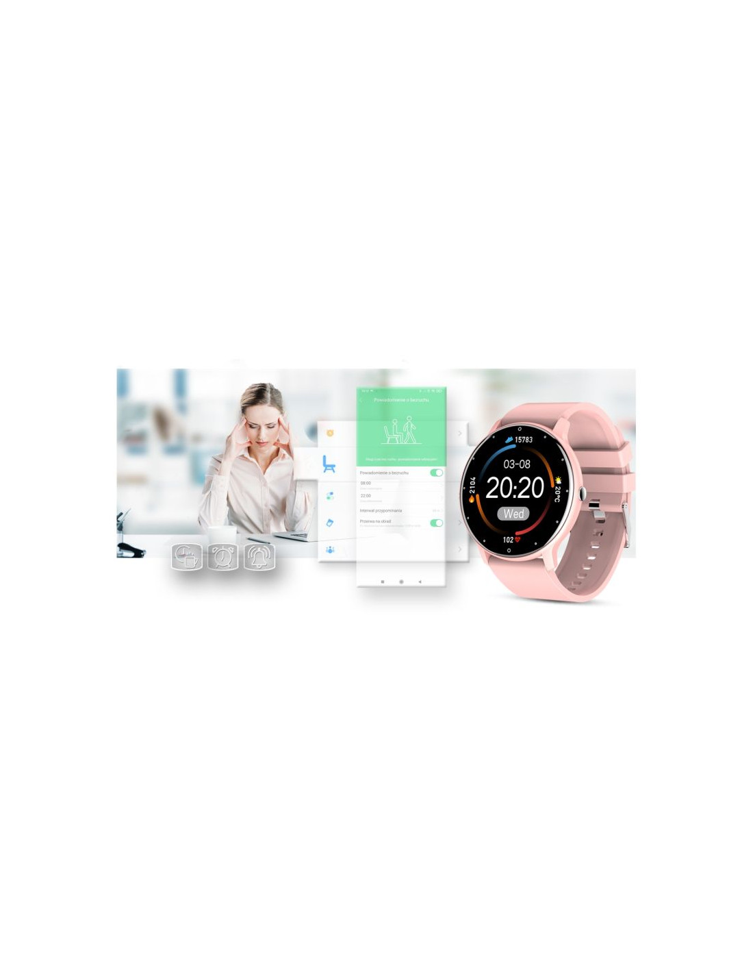 Smartwatch idealny dla aktywnych osób, którzy czas wolny spędzają na uprawianiu sportu i dbanie o zdrowy tryb życia.Ten model posiada wiele różnych trybów sportowych: koszykówka, rower, bieganie, chodzenie, skakanie, piłka nożna i badminton, które pozwolą w łatwy sposób kontrolować trening lub zabawę sportową.Pozwoli ci zaplanować i kontrolować czas, dystans, spalanie kalorii i efekt treningu.