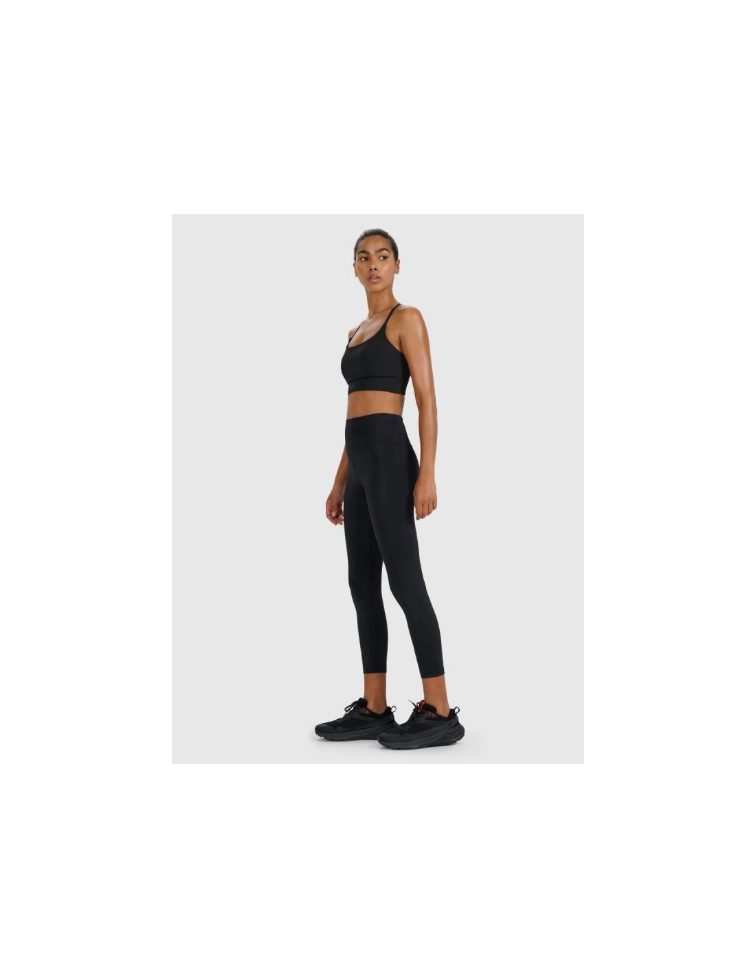 Legginsy posiadają dopasowany krój slim, średni stan oraz długie nogawki sięgające za kostkę. Zostały wykonane z miękkiej i wytrzymałej dzianiny interlock o gładkiej strukturze po obu stronach. Tkanina skutecznie odprowadza wilgoć i zapewnia uczucie suchości nawet podczas intensywnych ćwiczeń.