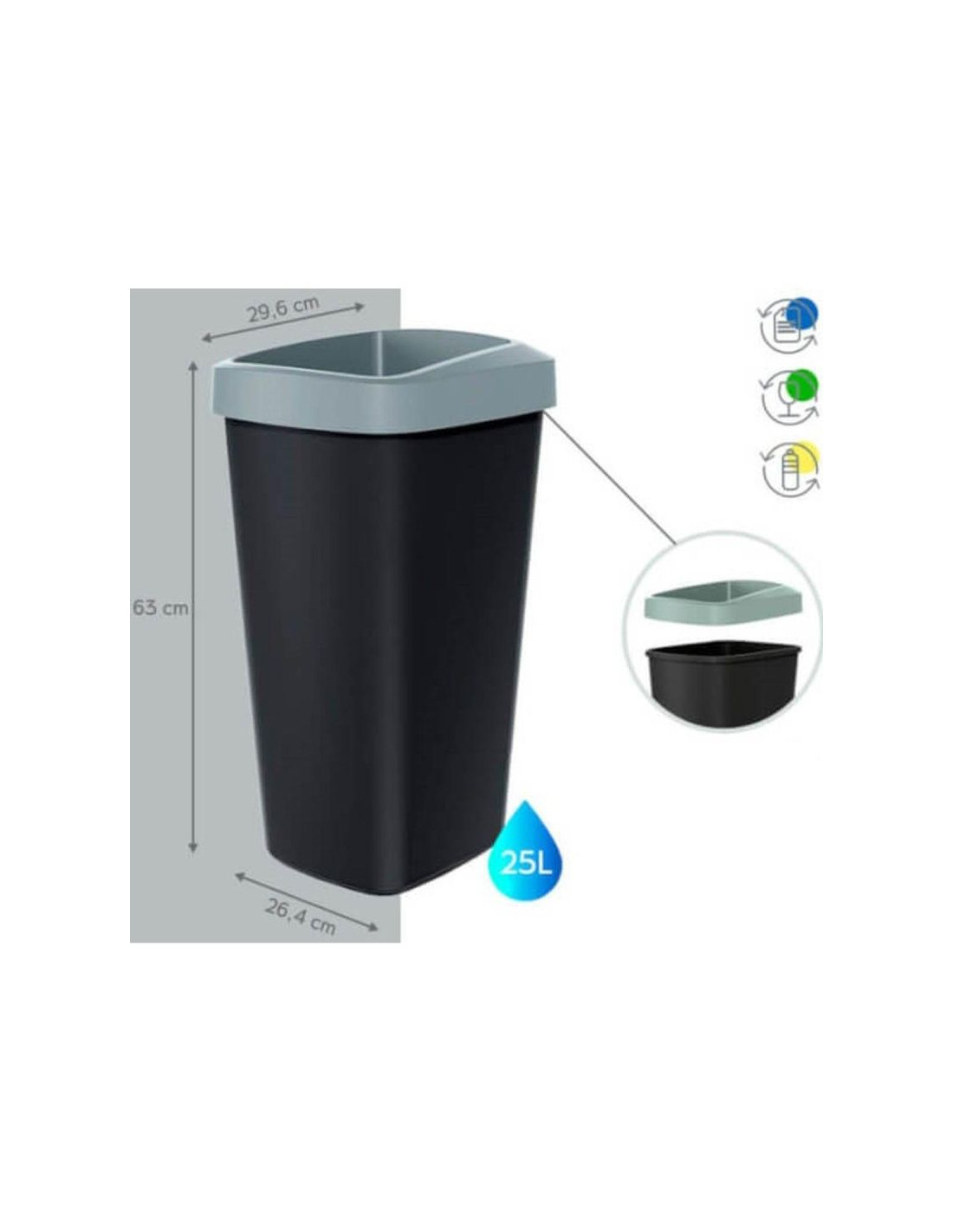 Wyposażony 3 kolorowe pokrywy, ułatwią wrzucanie i segregowanie śmieci, a funkcjonalna ramka, sprawi że worek będzie stabilnie umocowany.