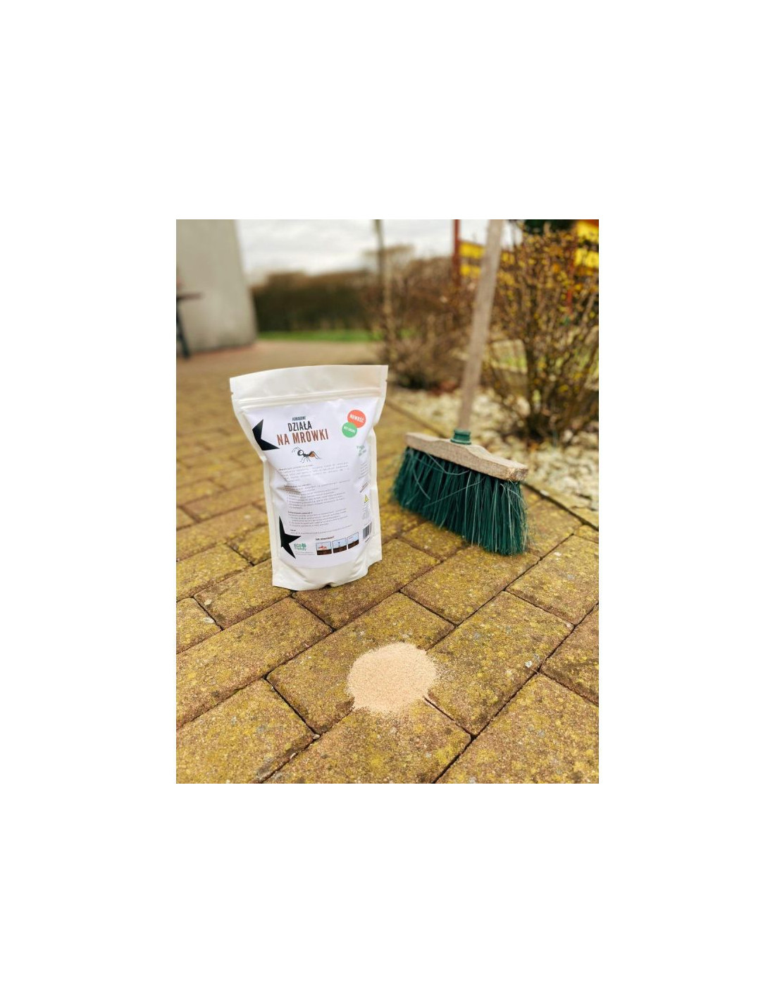 Wystarczy usunąć piasek naniesiony przez owady i zastąpić go tym innowacyjnym i w 100% naturalnym produktem skąłdającym się z piasku i bentonitu (rodzaj gliny). Już po kilku dniach problem z uporczywymi mrówkami zniknie!