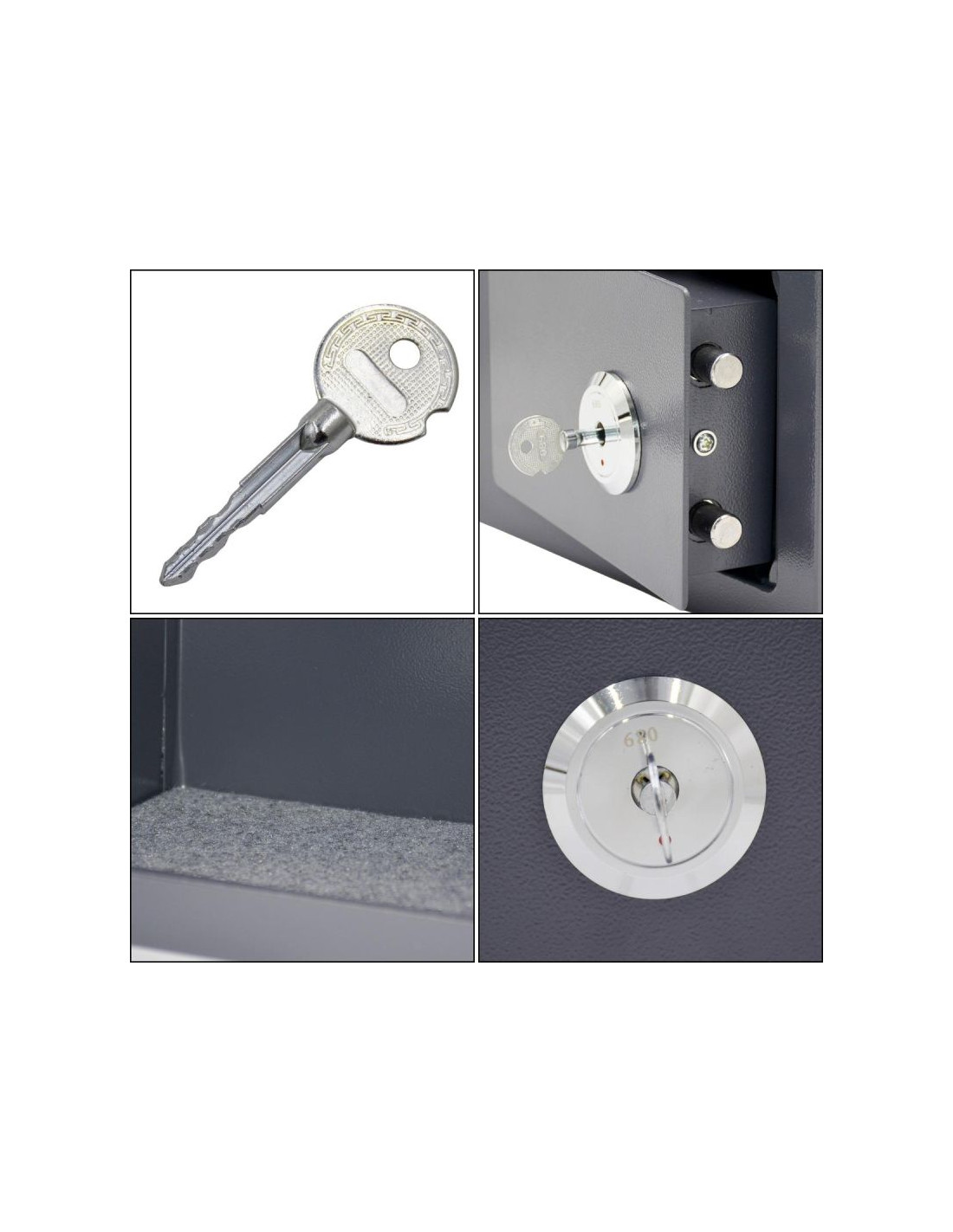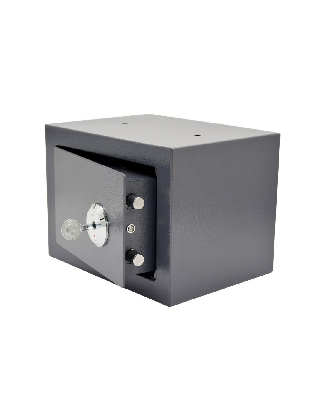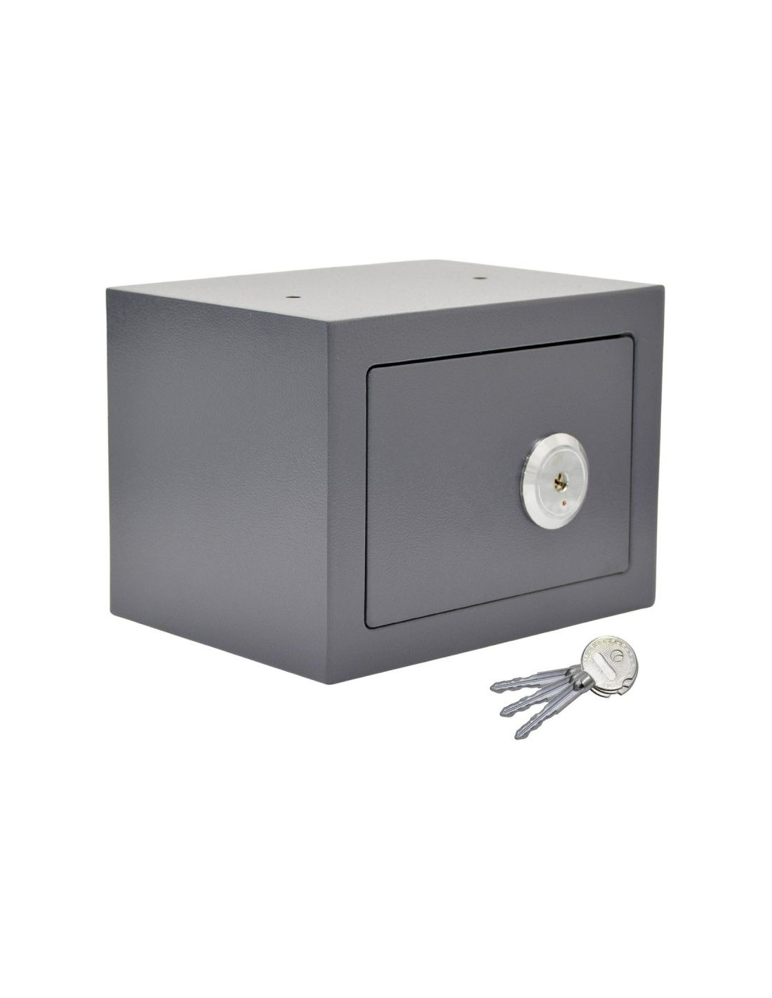 Sejf wyposażony jest w klasyczny zamek na klucz, który zapewnia łatwą i niezawodną ochronę. W zestawie znajdują się 3 kluczyki, co pozwala na ich przechowywanie w różnych miejscach i zapewnia dodatkowe bezpieczeństwo w razie zgubienia jednego z nich.
