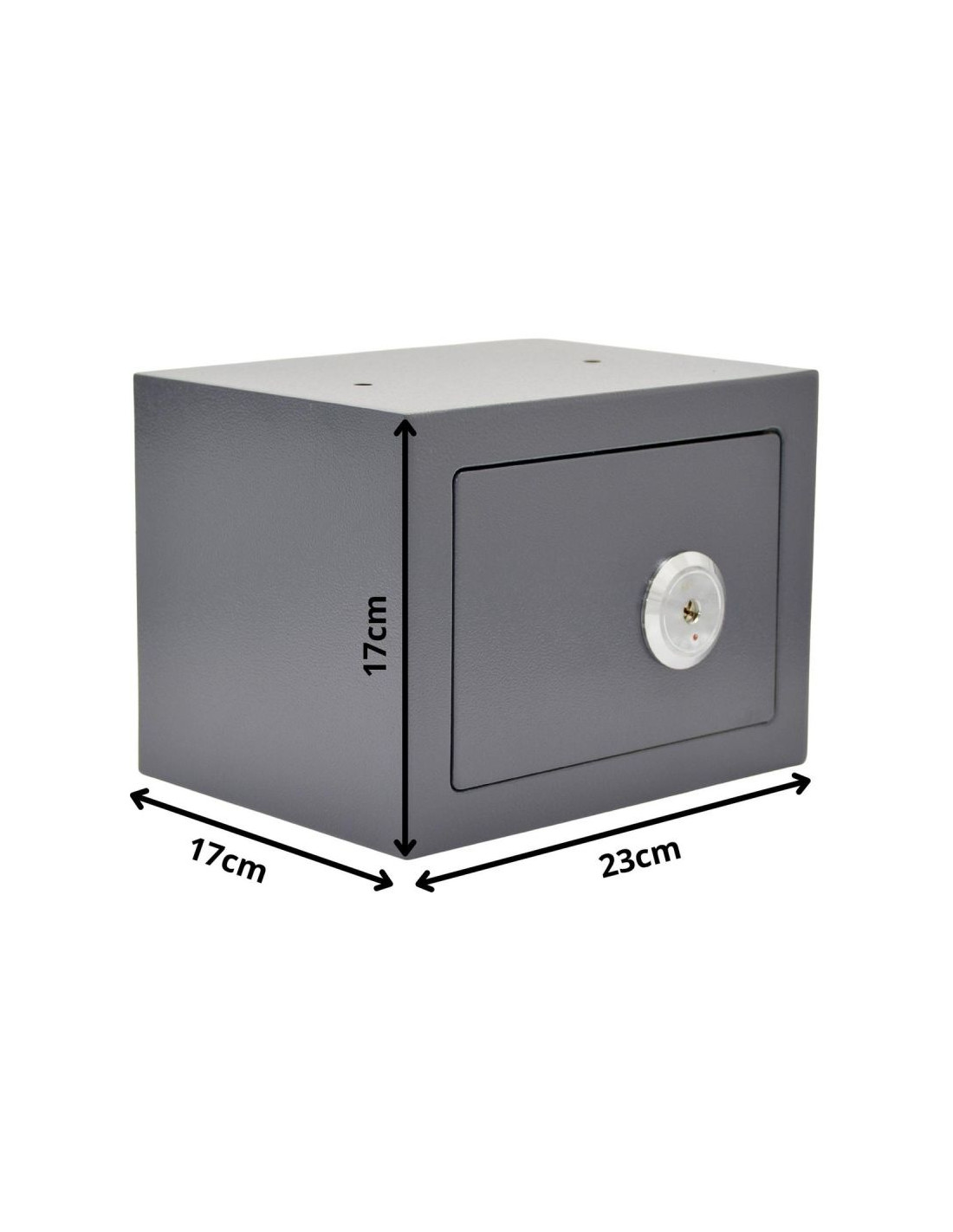 Dzięki niewielkim wymiarom 23x17x17 cm, sejf można łatwo ukryć w szafie, szufladzie, wnęce lub na półce, zapewniając dodatkowe bezpieczeństwo. Jego kompaktowa forma umożliwia optymalne zagospodarowanie przestrzeni, a jednocześnie zapewnia odpowiednią pojemność do przechowywania wartościowych rzeczy.
