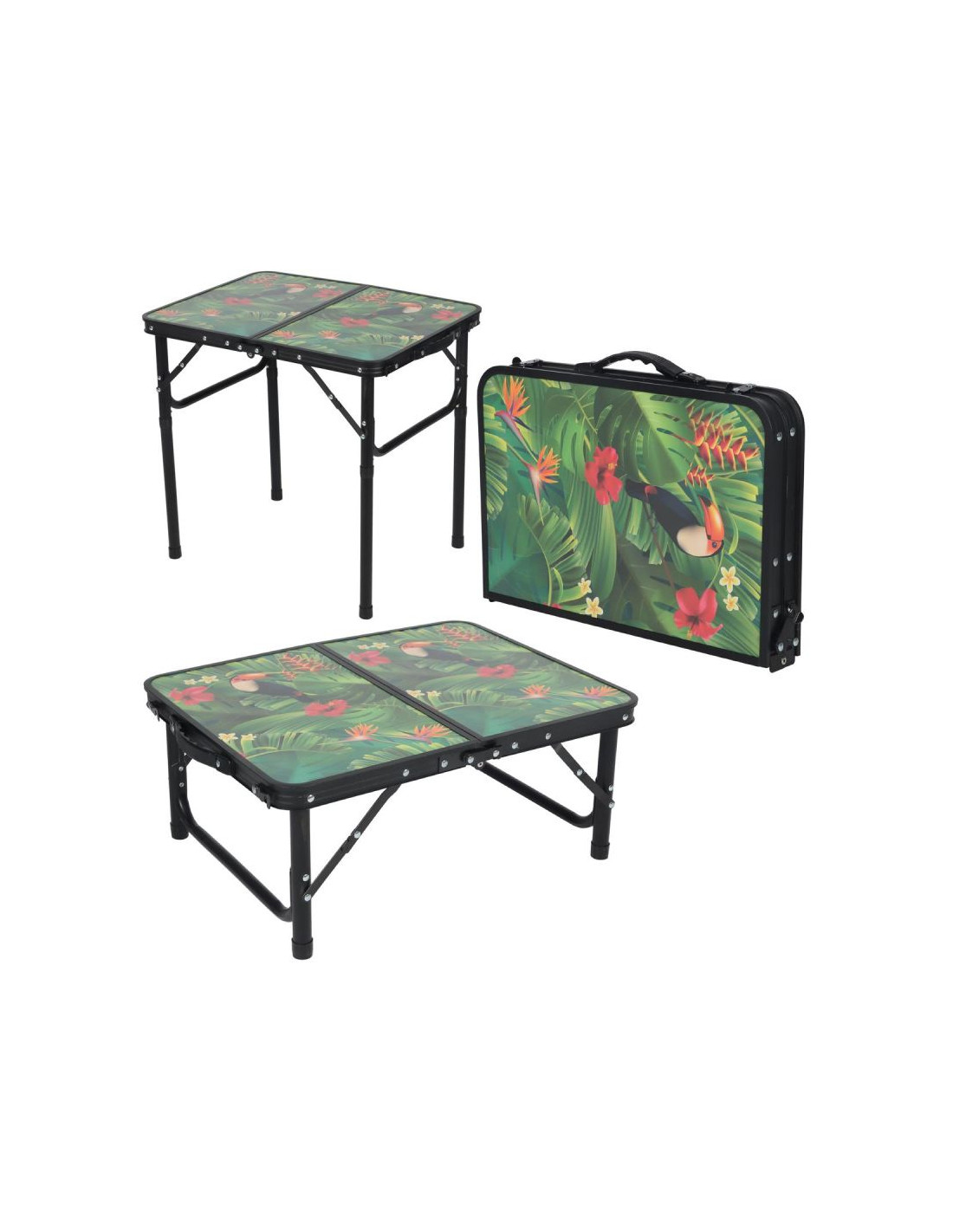 STOLIK TURYSTYCZNY 60x45x25-56CM FLOWER to praktyczne i stylowe rozwiązanie na każdą wyprawę. Regulowana wysokość pozwala dostosować stolik do różnych potrzeb, od posiłków po pracę w plenerze. Składana forma ułatwia transport i przechowywanie, czyniąc go idealnym towarzyszem na kemping, piknik czy biwak.