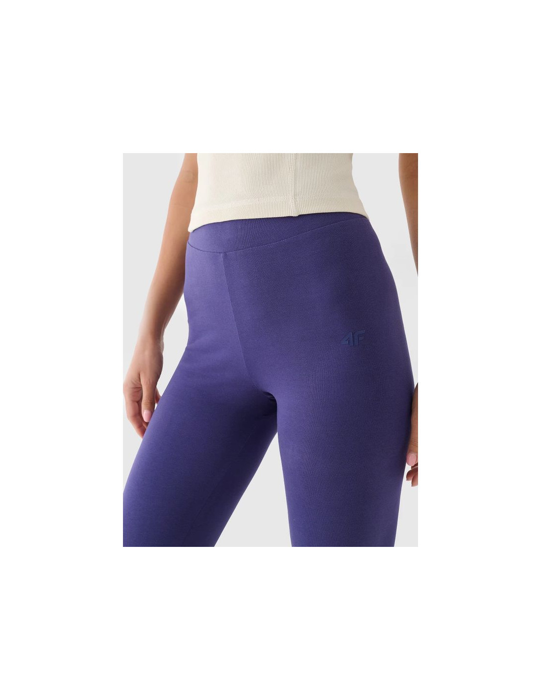 Legginsy bawełniane damskie idealnie sprawdzą się jako element zarówno casualowych, jak i sportowych stylizacji na co dzień. Legginsy na co dzień damskie posiadają dopasowany krój slim, który przylega do ciała. Splot single jersey z jednostronną gładką powierzchnią sprawia, że jest ona elastyczna i komfortowa w noszeniu. Posiadają wysoki stan, który utrzymuje się w miejscu i zapewnia lepsze krycie oraz nogawki o pełnej długości sięgające za kostkę.Legginsy 4F damskie są wykonane w 95% z bawełny, dzięki czemu materiał jest miękki, trwały i przyjemny w dotyku. Dzięki dodatkowi elastanu (5%) są rozciągliwe i wygodnie układają się na sylwetce. Bez kieszeni. Elastyczny pas bez regulacji.
