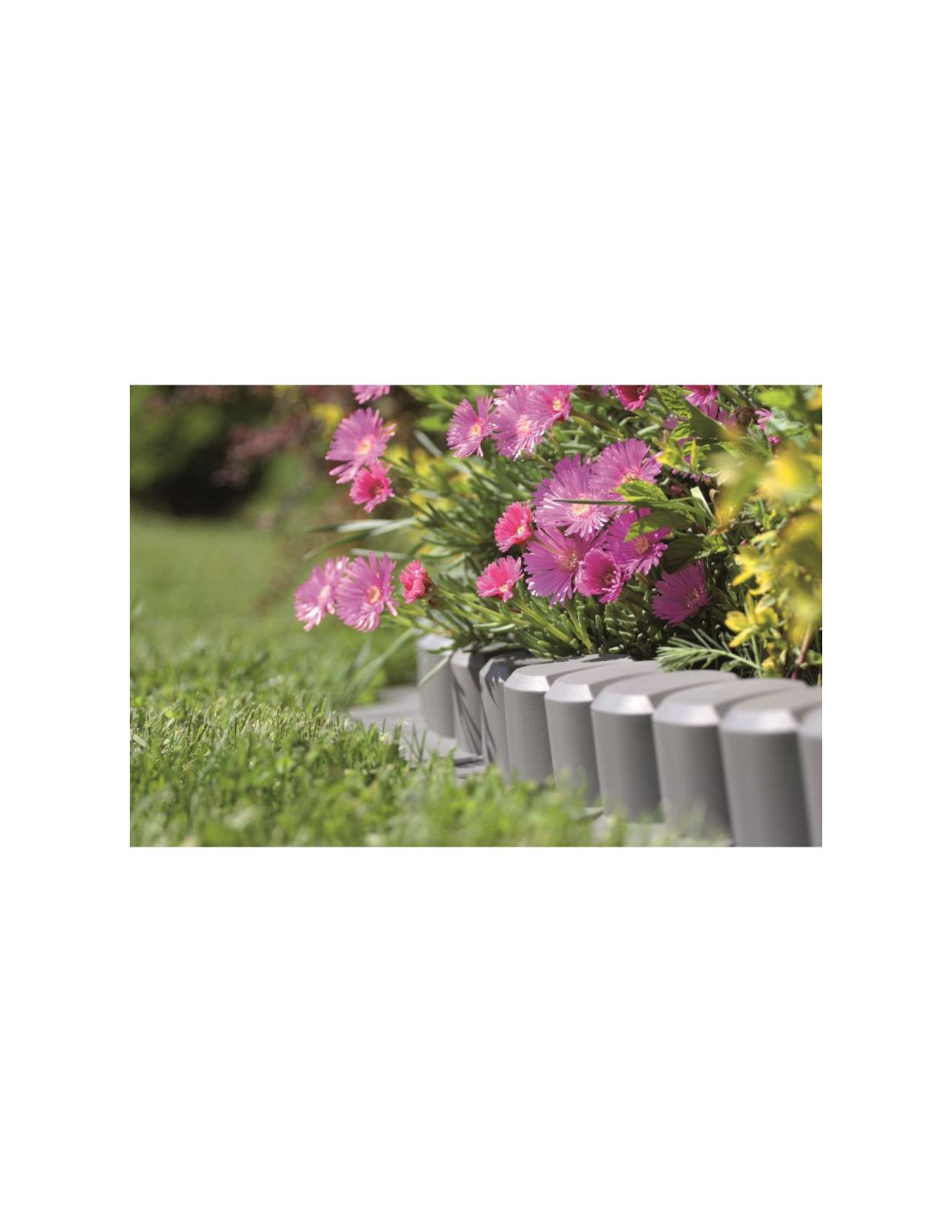 Konstrukcja palisady pozwala na tworzenie dowolnych form i kształtów,a po specjalnym kołnierzu mogą poruszać się koła kosiarki