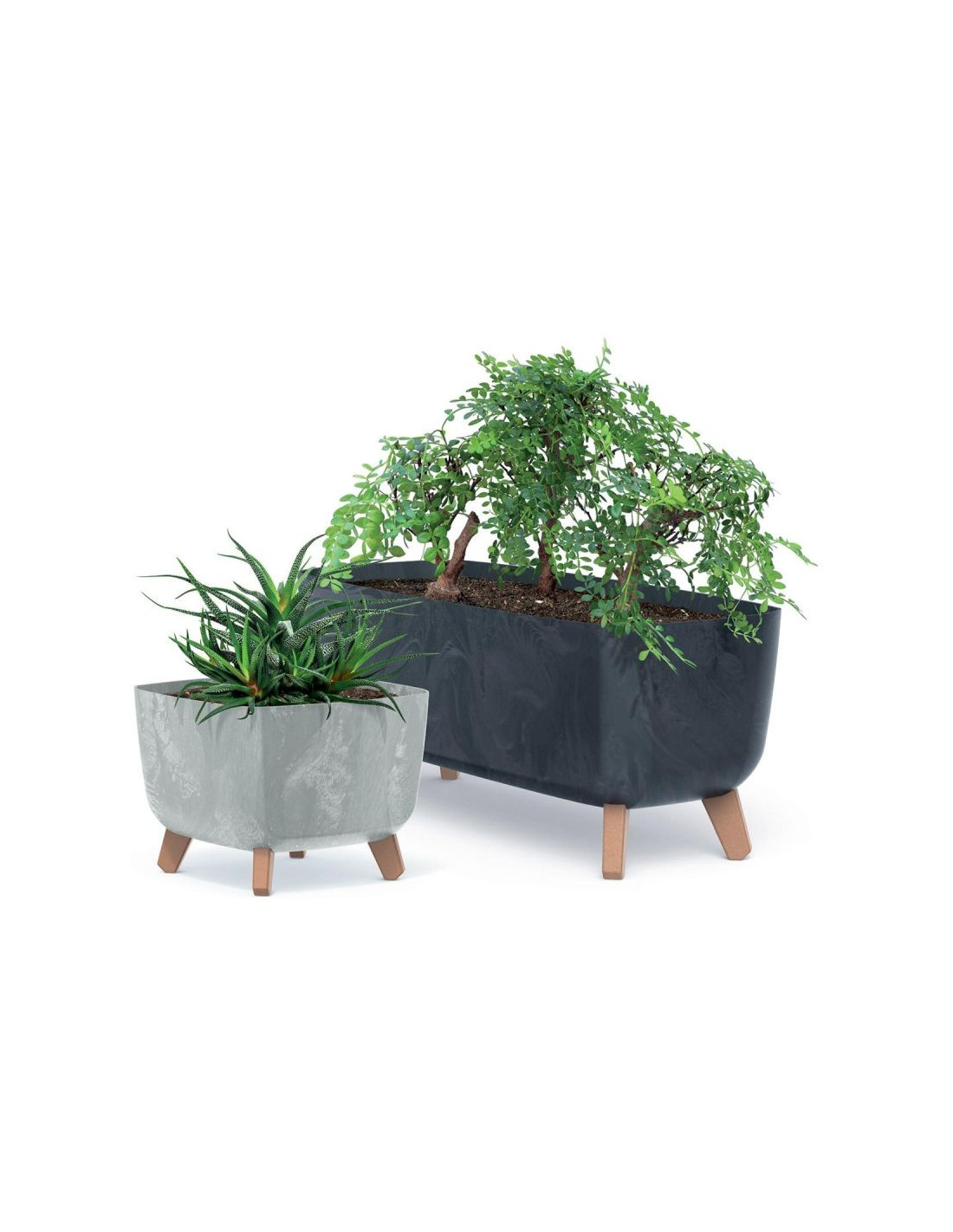 Konstrukcja kwietnika dzięki zdejmowanym nóżkom jest idealna do wyeksponowania zielonych aranżacji podłogowych zarówno w domu jak i na zewnątrz np. na tarasie czy na balkonie.